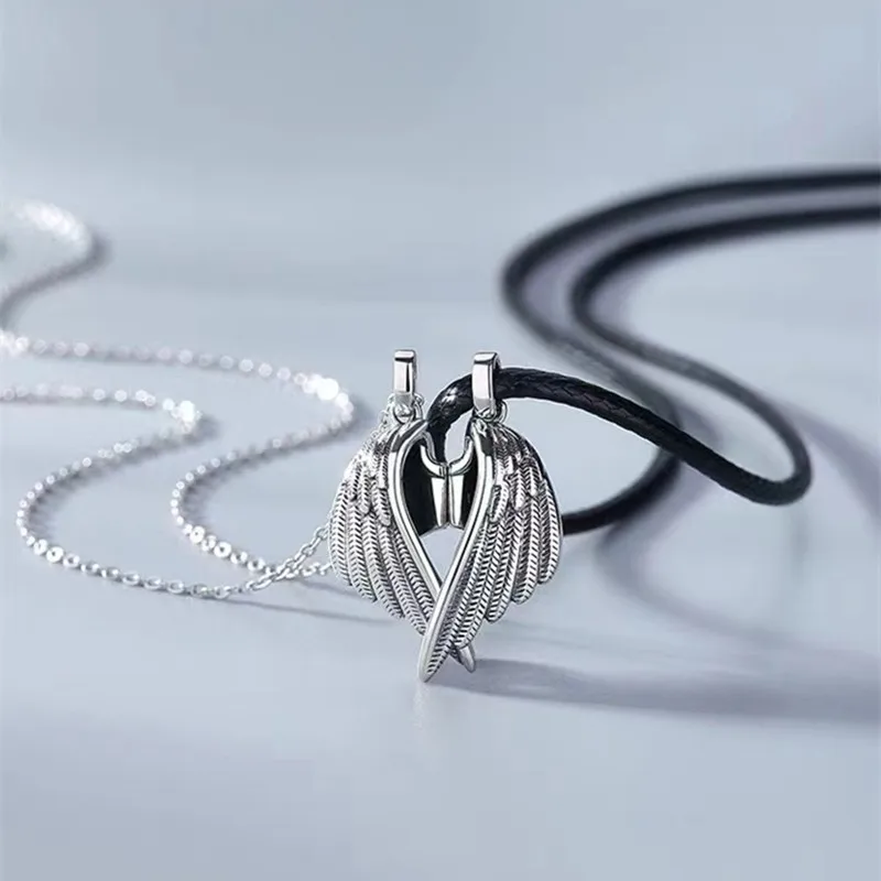 Парное магнитное ожерелье для влюбленных с крыльями дьявола и ангела, парное ожерелье, свадебные украшения, подарок для лучшего друга на День святого Валентина