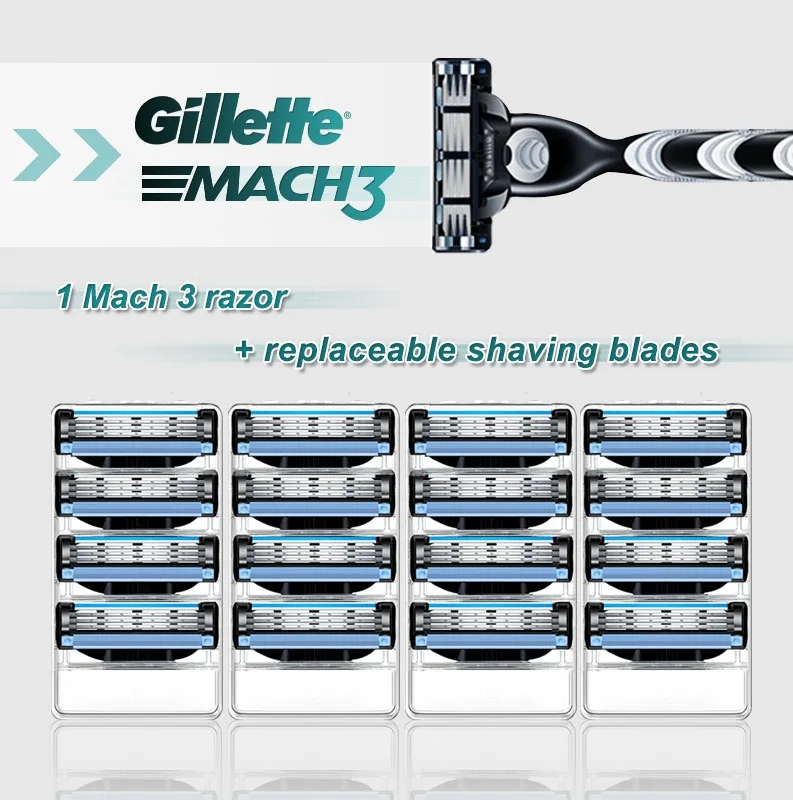 Эта посылка включает в себя оригинальный Gillette Mach 3 и сменные лезвия для бритвы (8 шт. или 16 шт. на выбор в соответствии с вашими предпочтениями).Бритва для бритья является оригинальной Gillette Mach 3.Сменные Лезвия Бритвы являются заменителями оригинальных лезвий.Ключевые особенности:1. Мужские бритвы Gillette Mach3 оснащены прочными лезвиями, которые остаются более острыми (по сравнению с Sensor3).2. Более острые лезвия предназначены для 15 удобных процедур бритья.3. Эта бритва Gillette оснащена смазочной лентой, которая скользит по коже, чтобы предотвратить покраснение.4. Мужская бритва Mach3 оснащена превосходной, сбалансированной, оптимальной ручкой веса для комфортного бритья.Дружеское напоминание: для того, чтобы дать вам хороший опыт использования, пожалуйста, замените лезвие бритвы после того, как смазывающая полоса выцветла.Внимание, пожалуйста: поскольку упаковка продуктов Gillette часто меняется, мы не можем гарантировать, что упаковка продукта, которую вы получите, точно такая же, как на картинке. Спасибо за понимание.