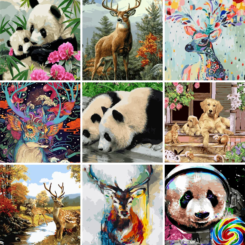 Раскраска по номерам, животное олень, панда, собака, картина по номерам,рисуй сам хобби 3 звезды, 24 цвета, живопись по номерам на холсте на подарок ,отправить груз из россии закупать в москве