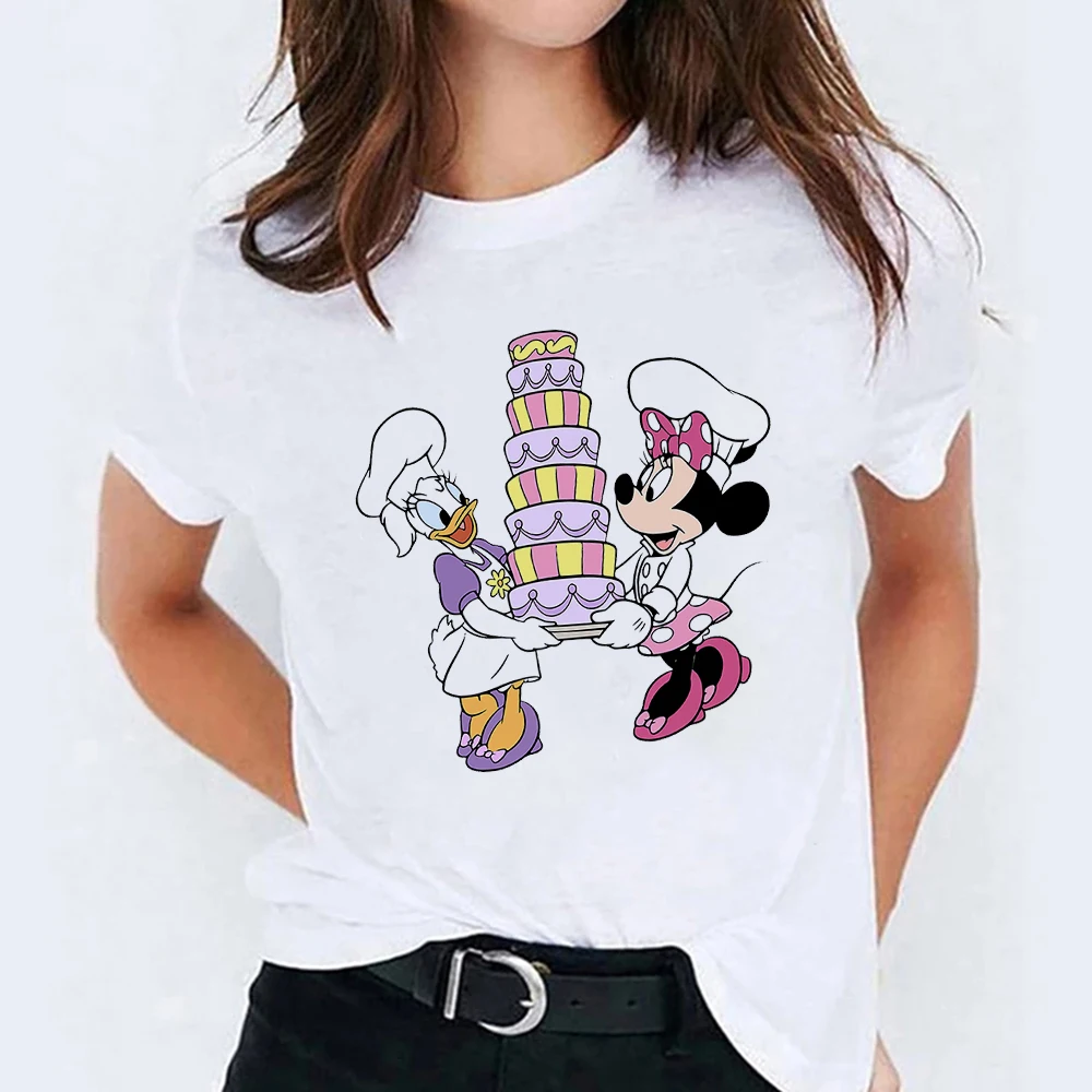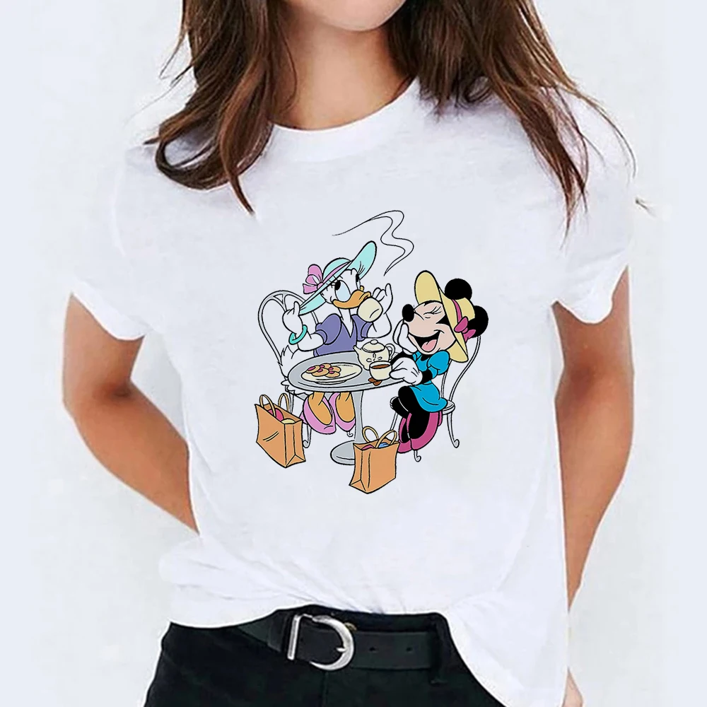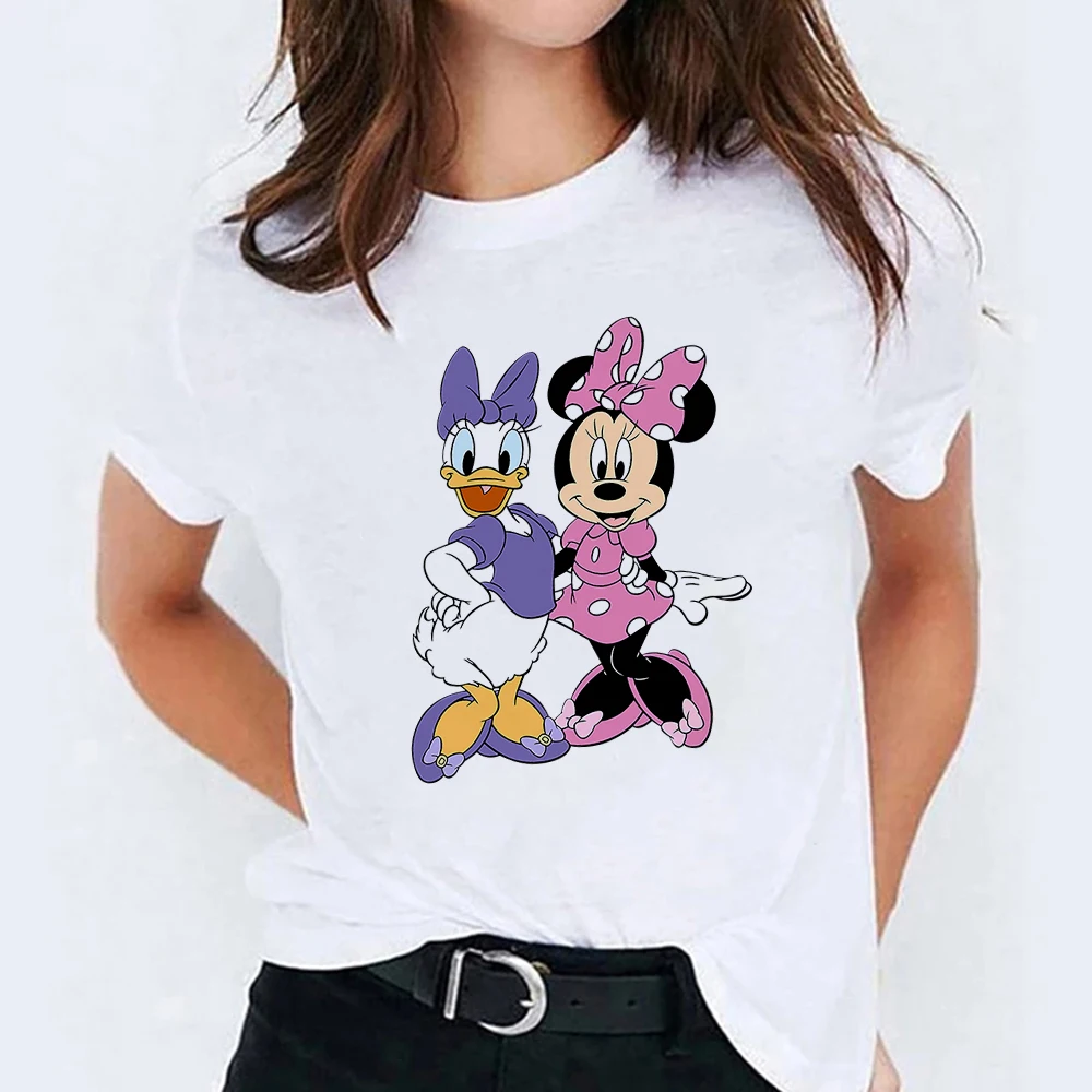 Женские футболки с Минни и маргариткой, Прямая поставка, белый топ Disney, одежда, кавайные модные футболки, женские удобные футболки с круглым вырезом
