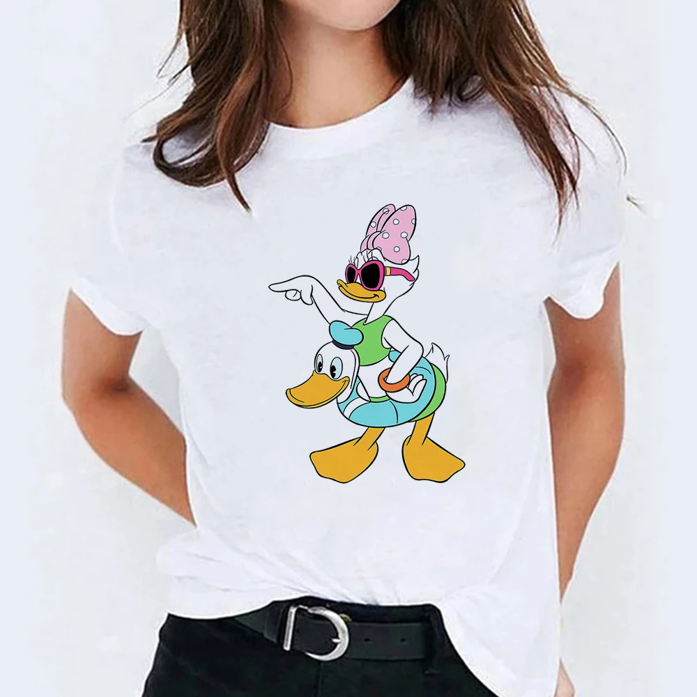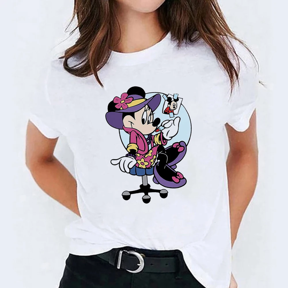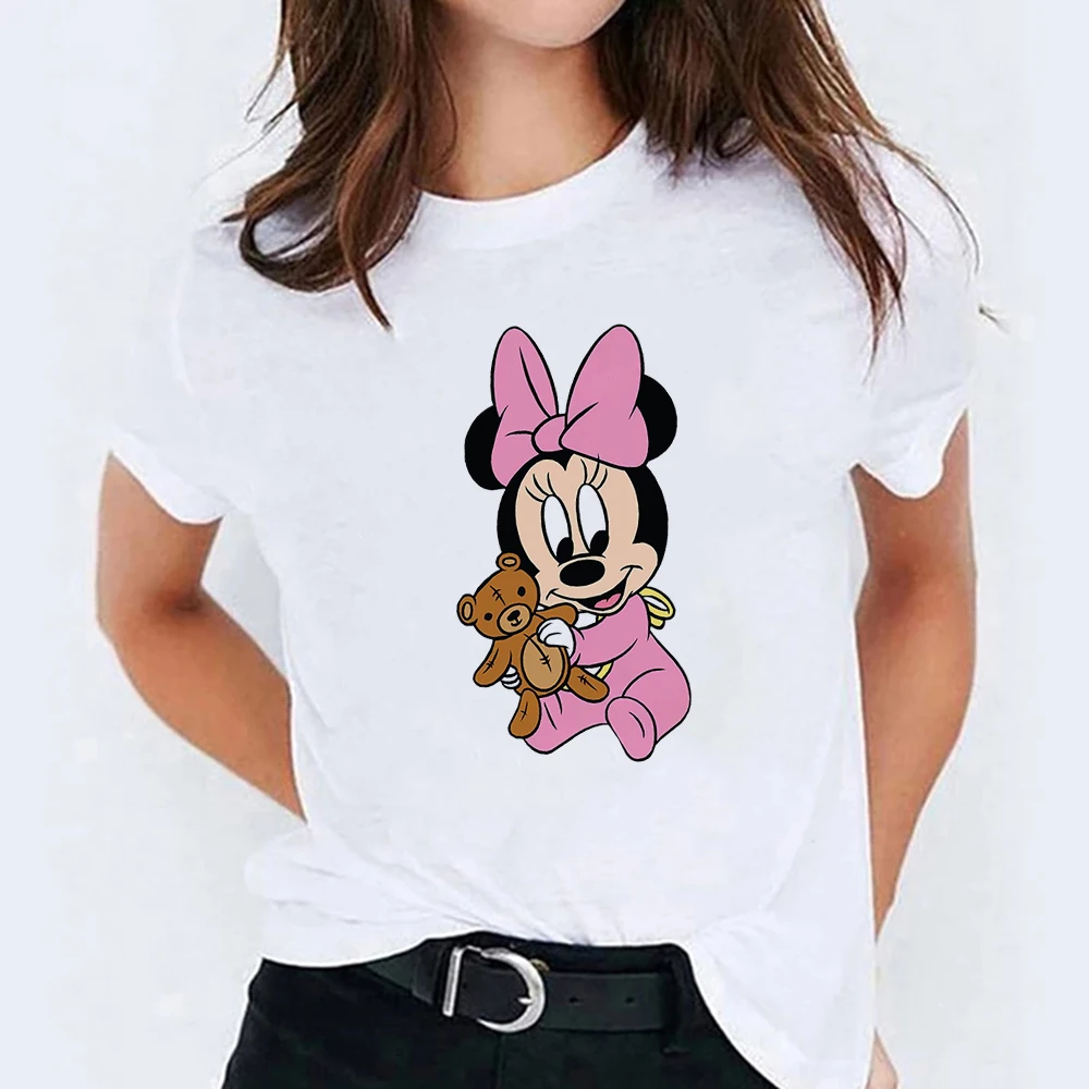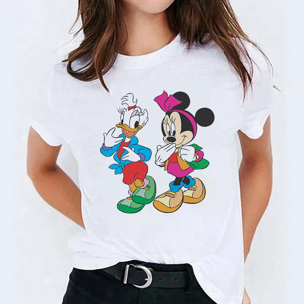 Женские футболки с Минни и маргариткой, Прямая поставка, белый топ Disney, одежда, кавайные модные футболки, женские удобные футболки с круглым вырезом