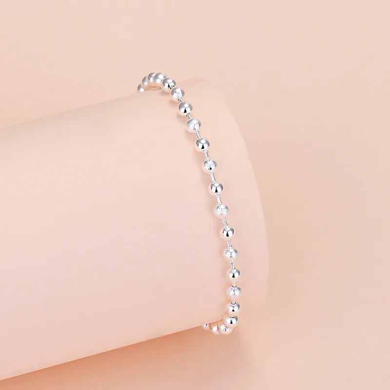 Женские браслеты-цепочки из серебра 925 пробы с круглыми бусинами