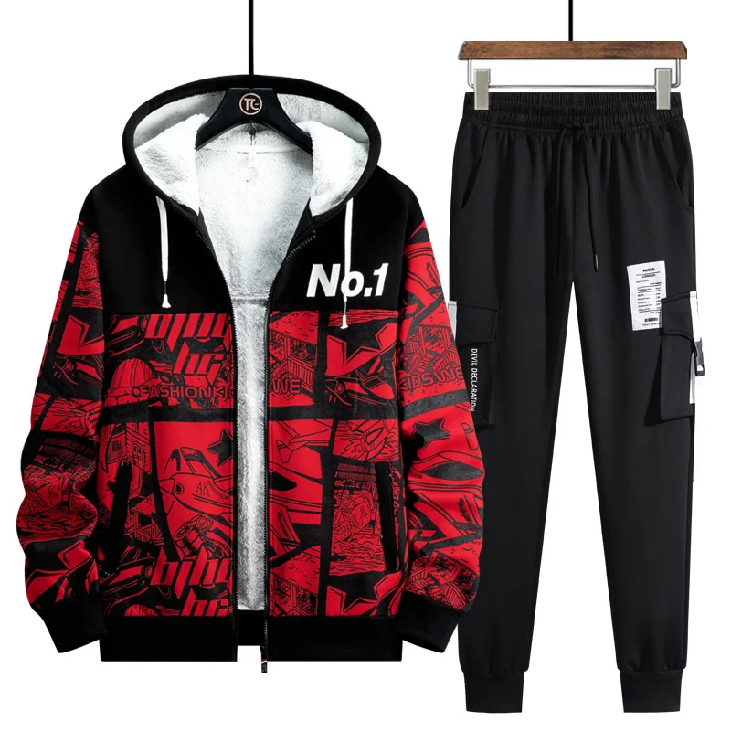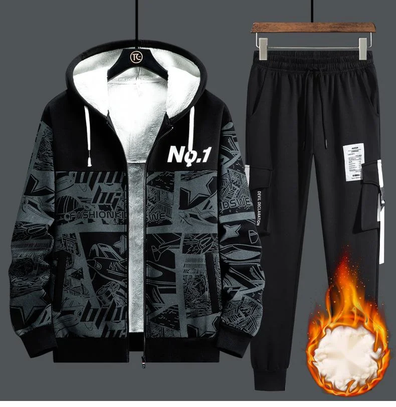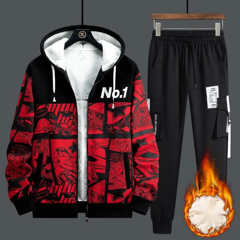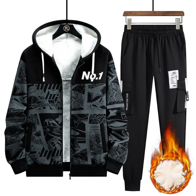 Спортивный костюм мужской из 2 предметов, утепленный свитер с капюшоном, утепленные спортивные штаны, пальто для мужа, студентов, Осень-зима