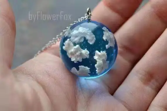 1 шт голубое небо белое облако цепь ожерелье Смола шар луна кулон о...
