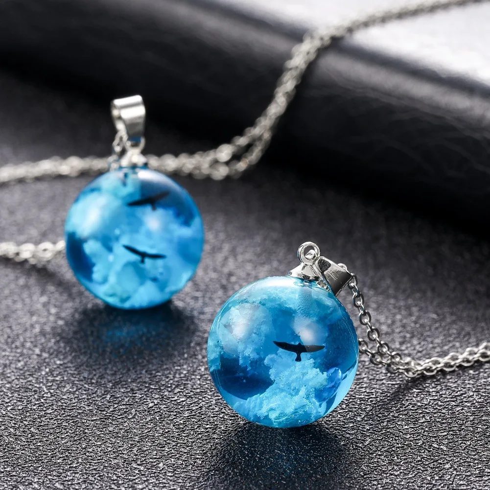 Ожерелье с подвеской в виде шара из смолы с голубым небом и белым о...