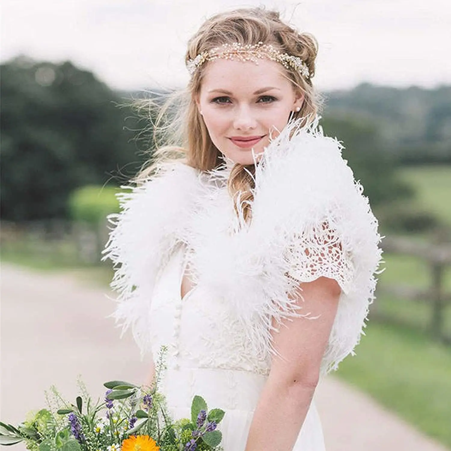 Шаль из страусиных перьев для свадебного платья, белый цвет, аксессуары для рукоделия, 2 метра