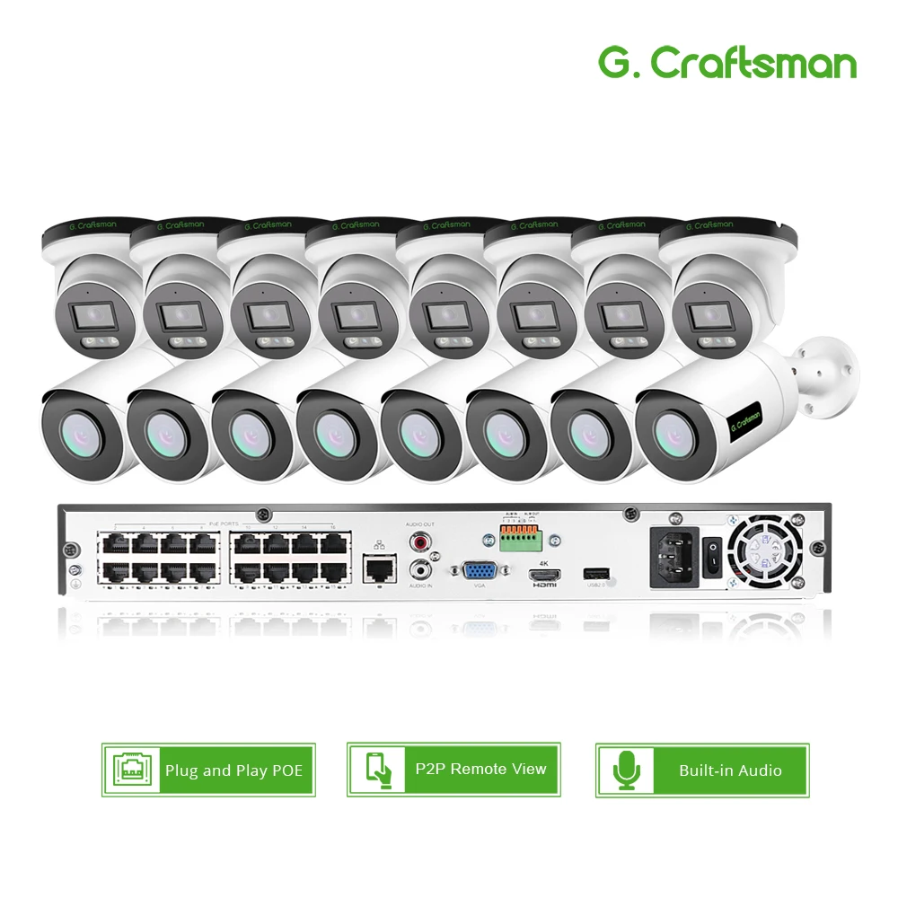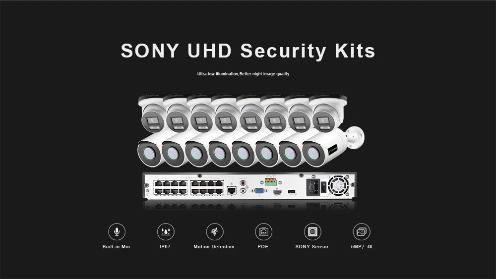 Система видеонаблюдения, комплект из 8 пуль и 8 купольных датчиков Sony, H.265, 16 каналов, NVR, IP67, 16 каналов, 5 МП, 4K, POE