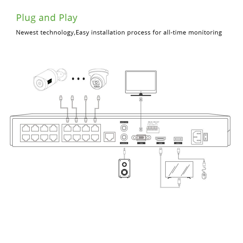 Для передачи видеосигнала и одновременного питания камеры необходим только один Ethernet кабель, поэтому вам не нужно использовать отдельный адаптер питания для подключения каждой камеры к ближайшему источнику питания. Безопасная, Стабильная и надежная передача питания всегда гарантируется.