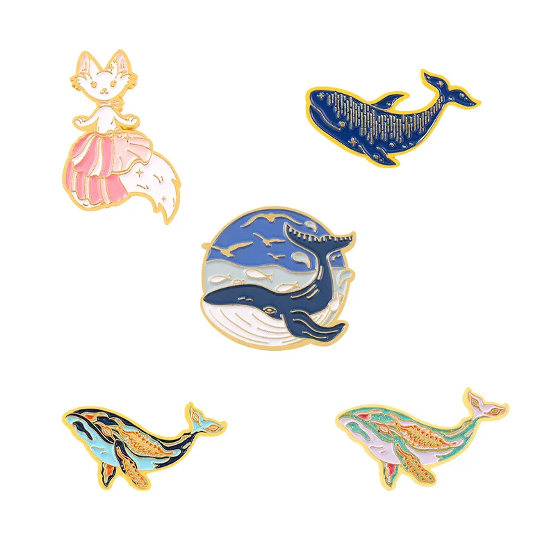Эмалированная булавка с Китом, лисой, мечтательный горб, броши с Китом, кошка, Русалка, аниме, искусство, металлические значки, булавки для сумки, одежды, ювелирные изделия, подарки