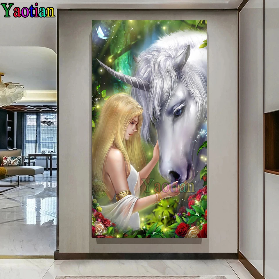 Большой 5d diy Алмазная картина красота и Единорог 3D Вышивка крестом полный квадрат/Круглая Мозаика Алмазная вышивка ручная работа подарок