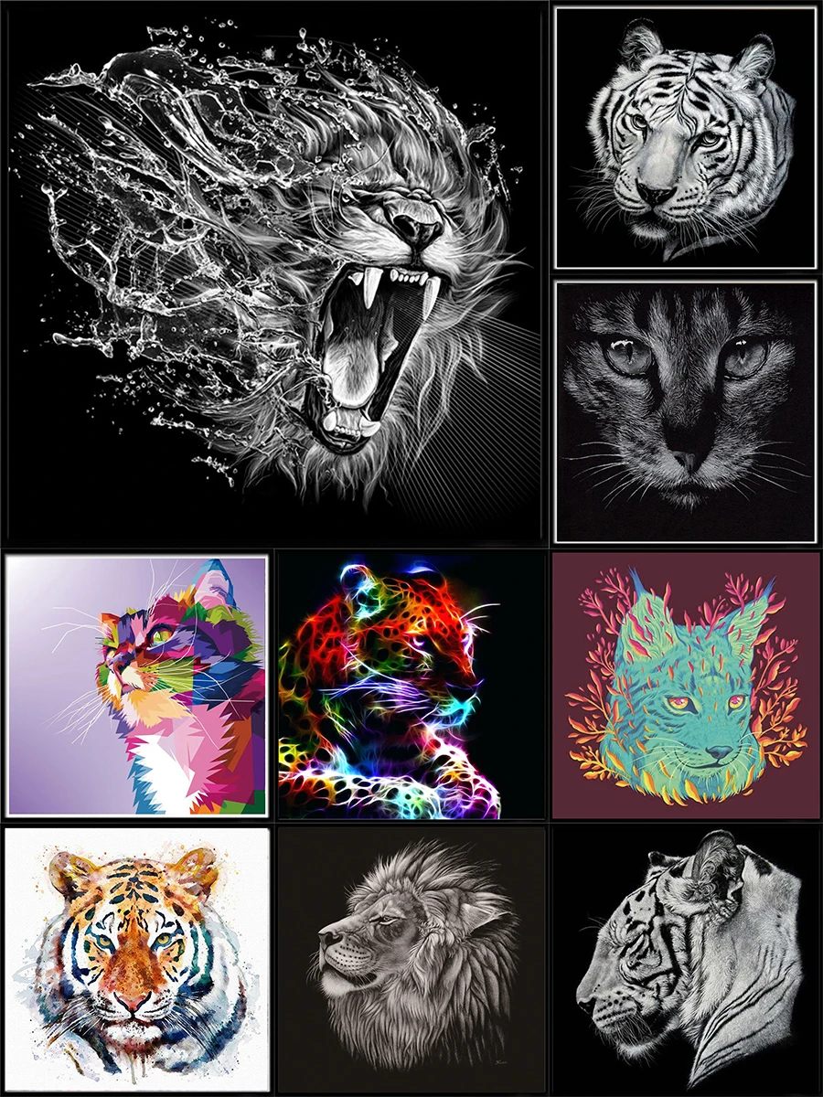 Алмазная живопись 5D "сделай сам", тигр, кошка и собака, вышивка кр...