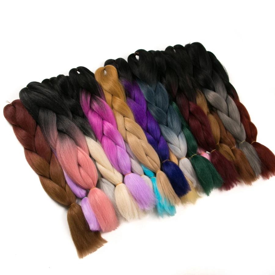 Омбре синтетические плетеные удлинители волос для косичек в коробке 24 дюйма 100 г Джамбо косички Омбре тональный цвет розовый черный синий