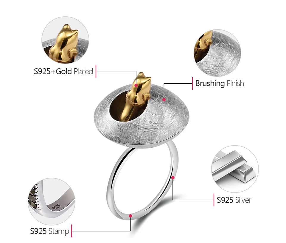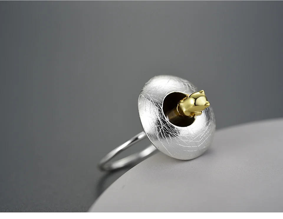 Женское кольцо кошка Lotus Fun, изящное дизайнерское кольцо ручного изготовления из настоящего серебра 925 пробы