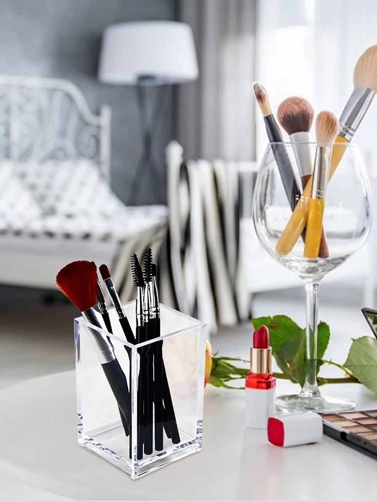 Настольный ящик для хранения, квадратный прозрачный акриловый держатель для косметических кистей, карандаш для бровей, инструменты для макияжа, пылезащитный Органайзер, хранение
