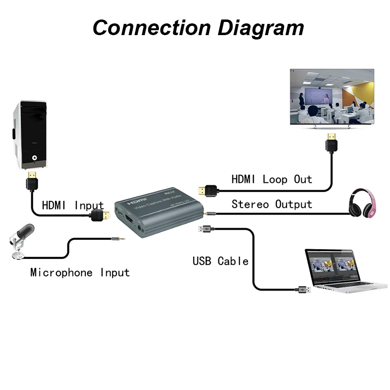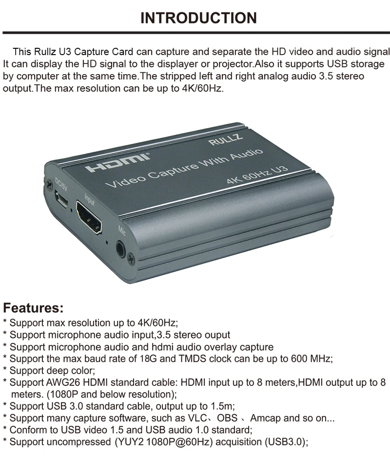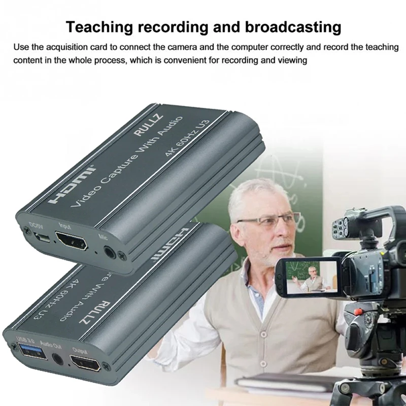 Карта захвата аудио и видео с микрофоном, 4K 60 Гц, USB 3,0, 1080P, 60 кадров в секунду