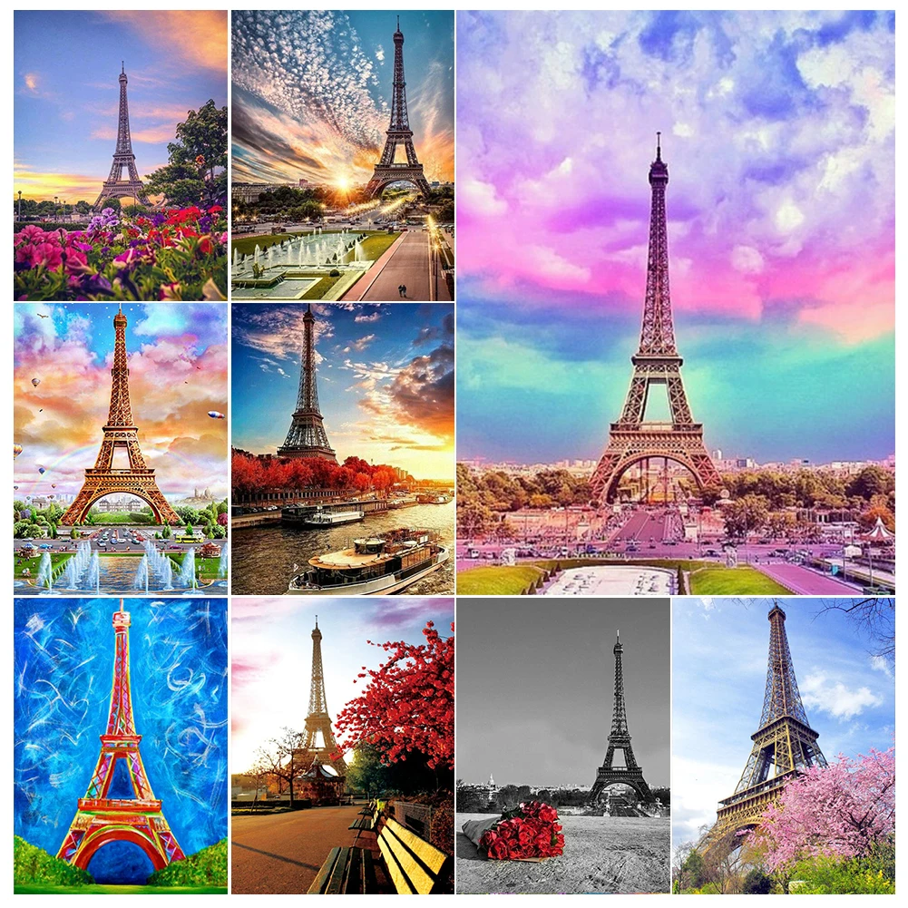 Алмазная 5D картина сделай сам с изображением Эйфелевой башни пейзажа, мозаика ручной работы, Набор для вышивки крестиком стразы, домашний декор