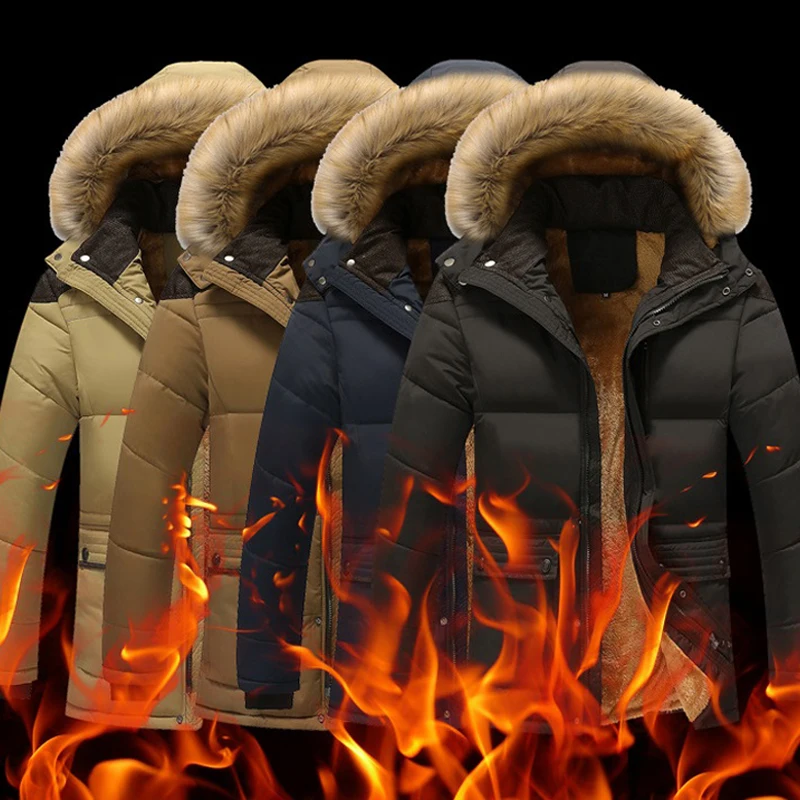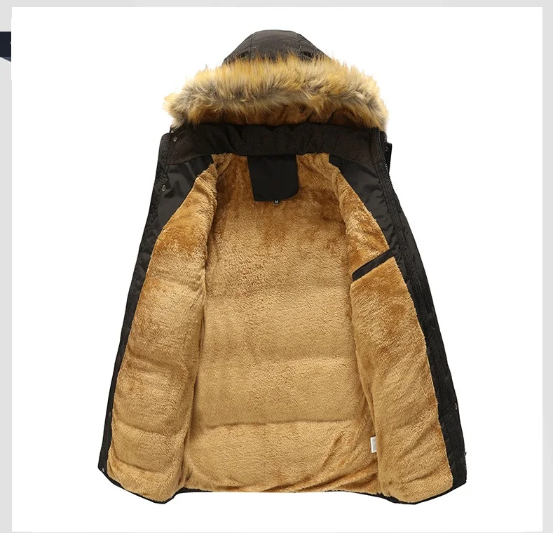 Зимняя плюшевая утепленная куртка, Мужская парка с мехом и капюшоно...