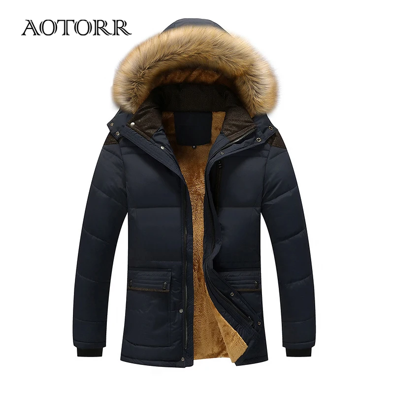 Мужская парка с меховым воротником, зимняя теплая Толстая хлопковая...