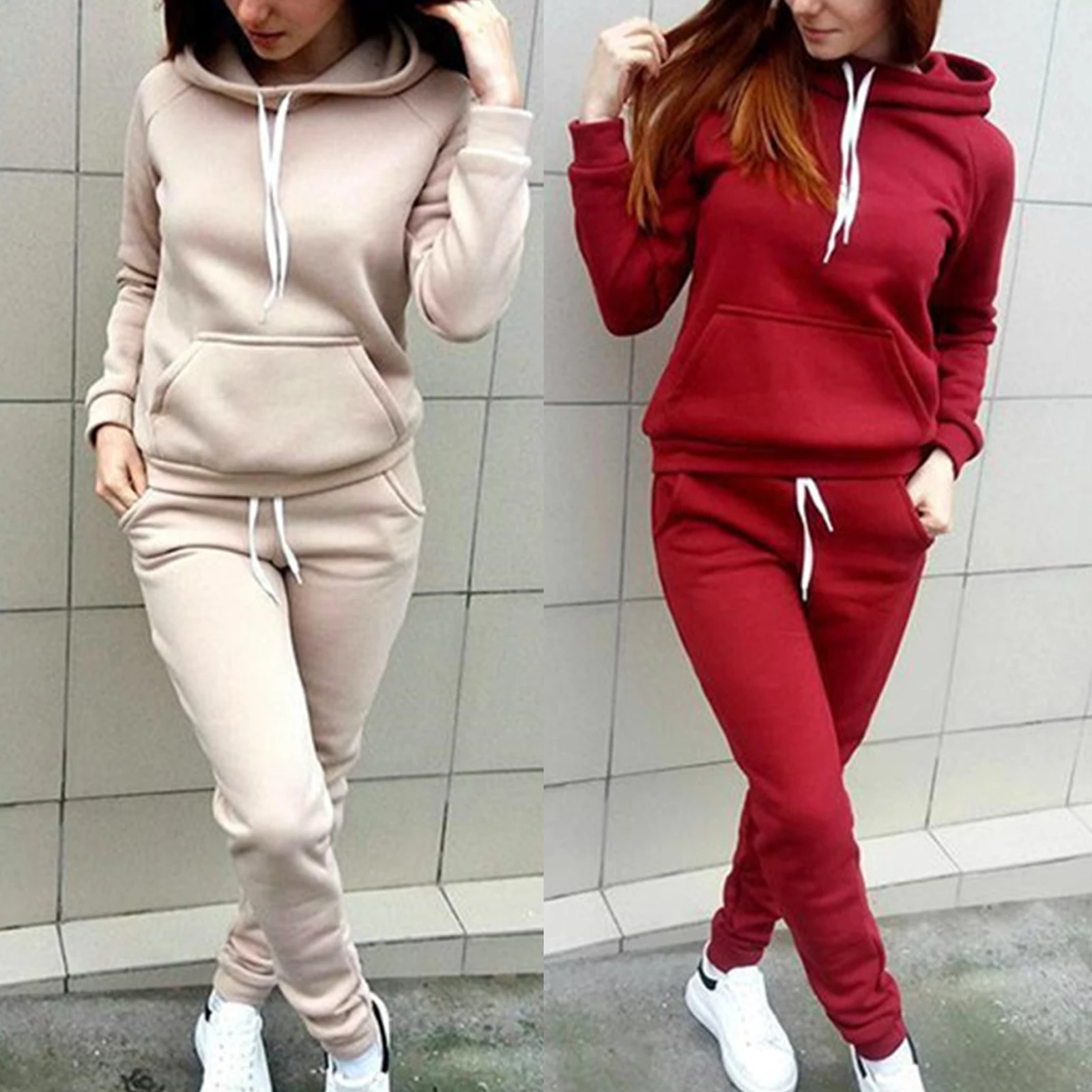 Простой женский осенний спортивный костюм, толстовки с капюшоном и штаны, комплект для упражнений NOV99