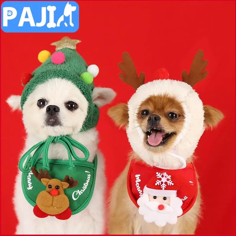 Рождественская шапка для питомца, набор полотенец для слюны, зимняя...