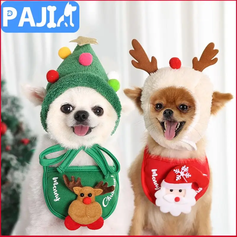 Рождественская шапка для питомца, набор полотенец для слюны, зимняя...