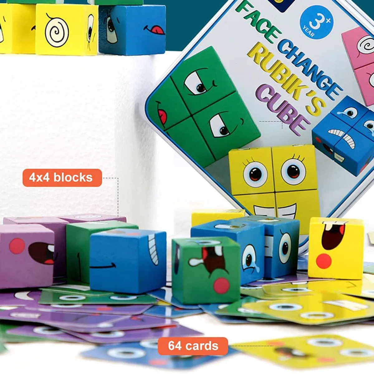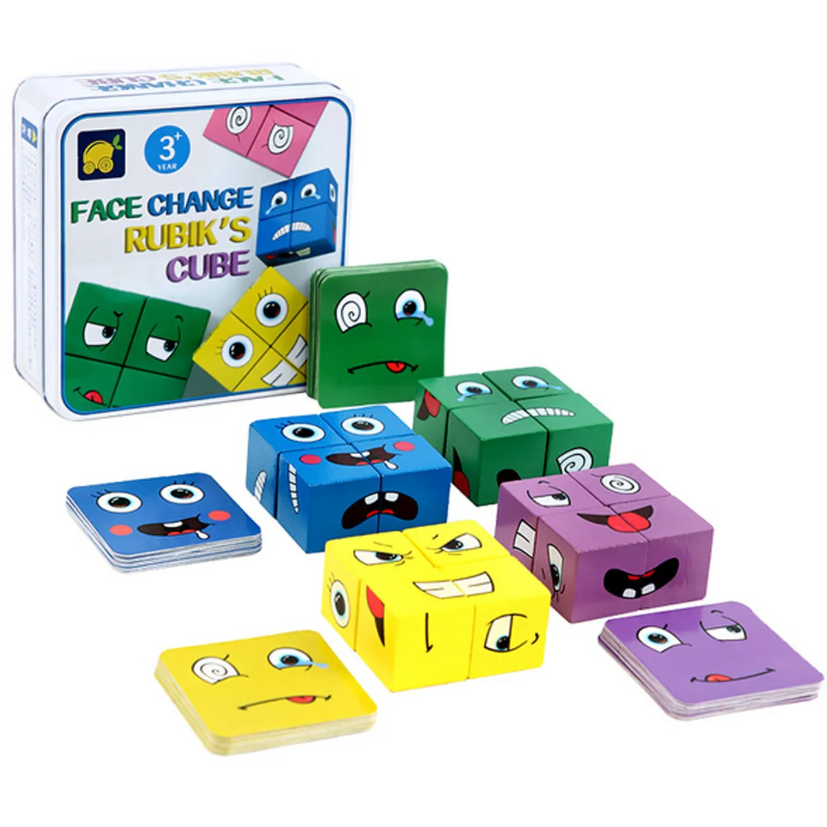 Деревянный Игрушки с выражениями Деревянный Магический Куб с рисунком лица строительные блоки образовательные Монтессори игрушки для детей в возрасте От 3 до 5 лет, 16 штук деревянные пилы и 64 Карты