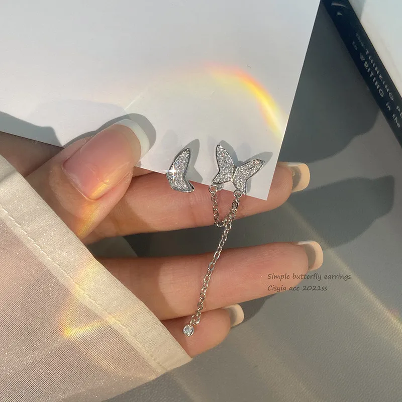 Корейские элегантные милые Стразы с бабочкой, серьги для женщин и девочек, модные металлические цепочки, ювелирные изделия, подарки