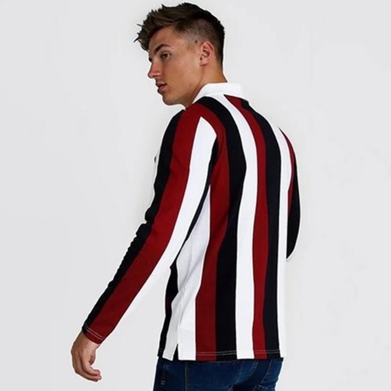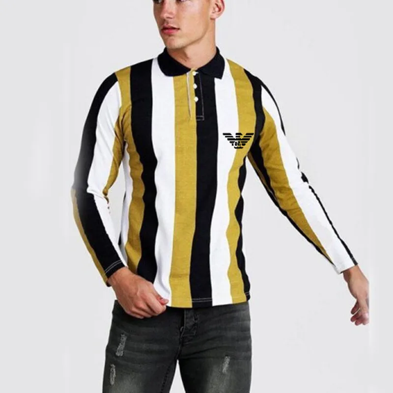 Мужская приталенная рубашка-поло в полоску, с отложным воротником и длинными рукавами