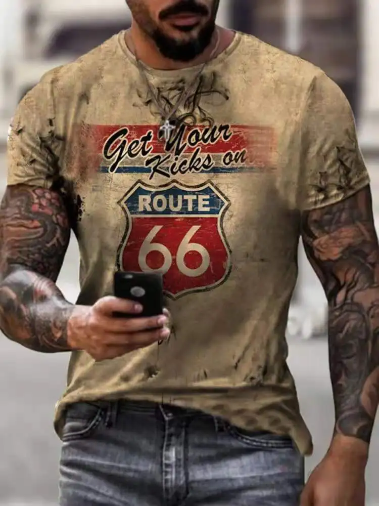 Футболка мужская с принтом шоссе 66, модная повседневная свободная ...