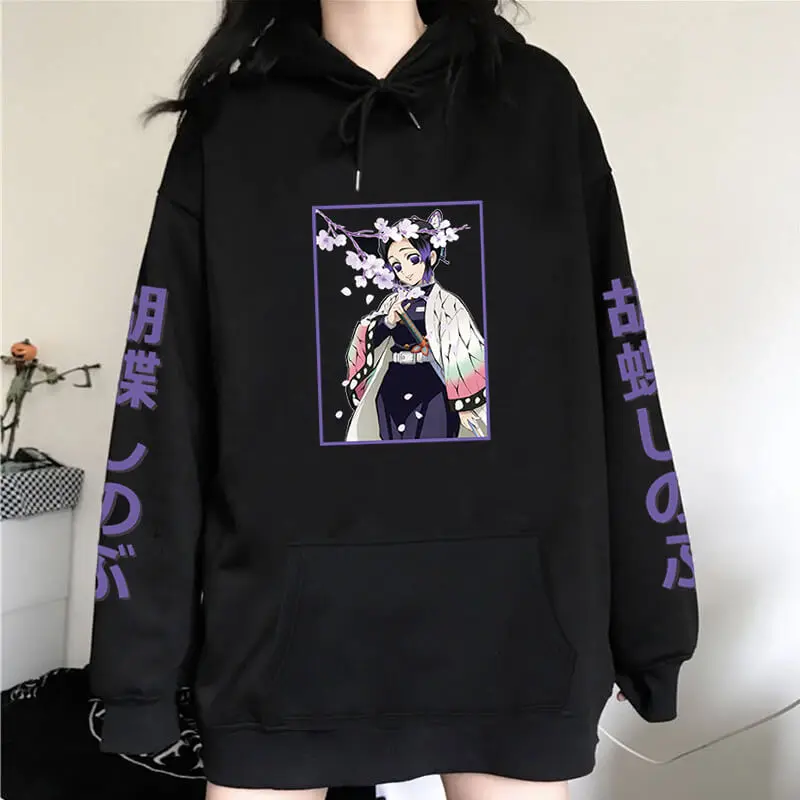 Толстовка с капюшоном с изображением аниме рассекающего демонов киметсу No Yaiba толстовки Shinobu Kocho мужские женские мужские толстовки