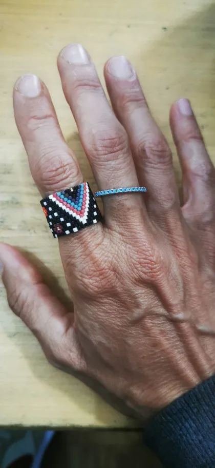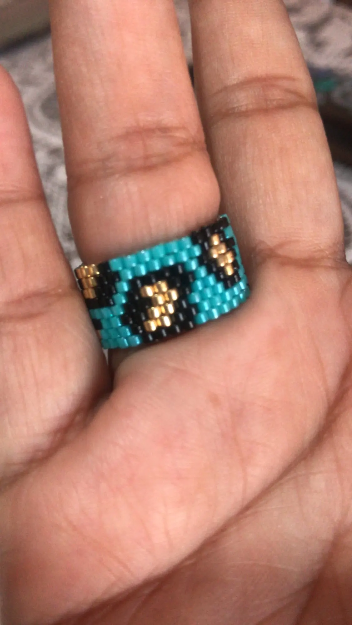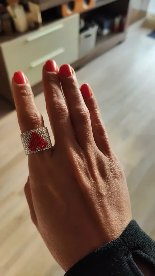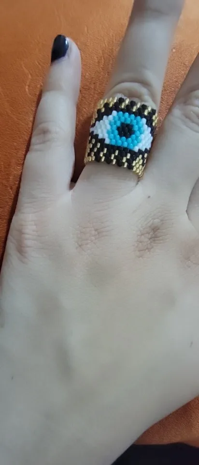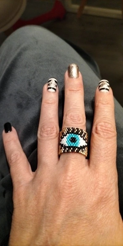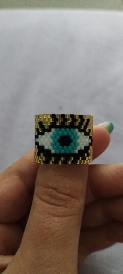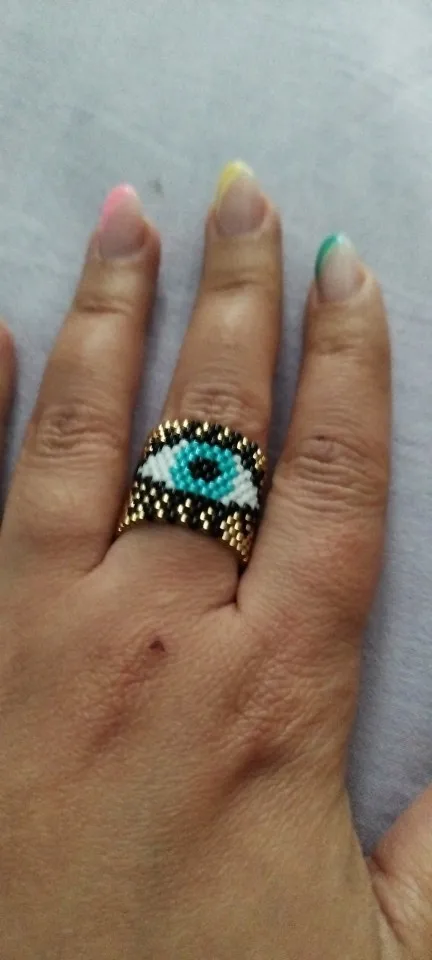 Отличного качества кольцо. Бисер ровный, похож на японский. Сплетено аккуратно. На 17 размер пальца подошло. Заказ был упакован в пакет с пупыркой, внутри мешочек. До Владимира заказ приехал за 3 недели. Советую кольцо и продавца.
