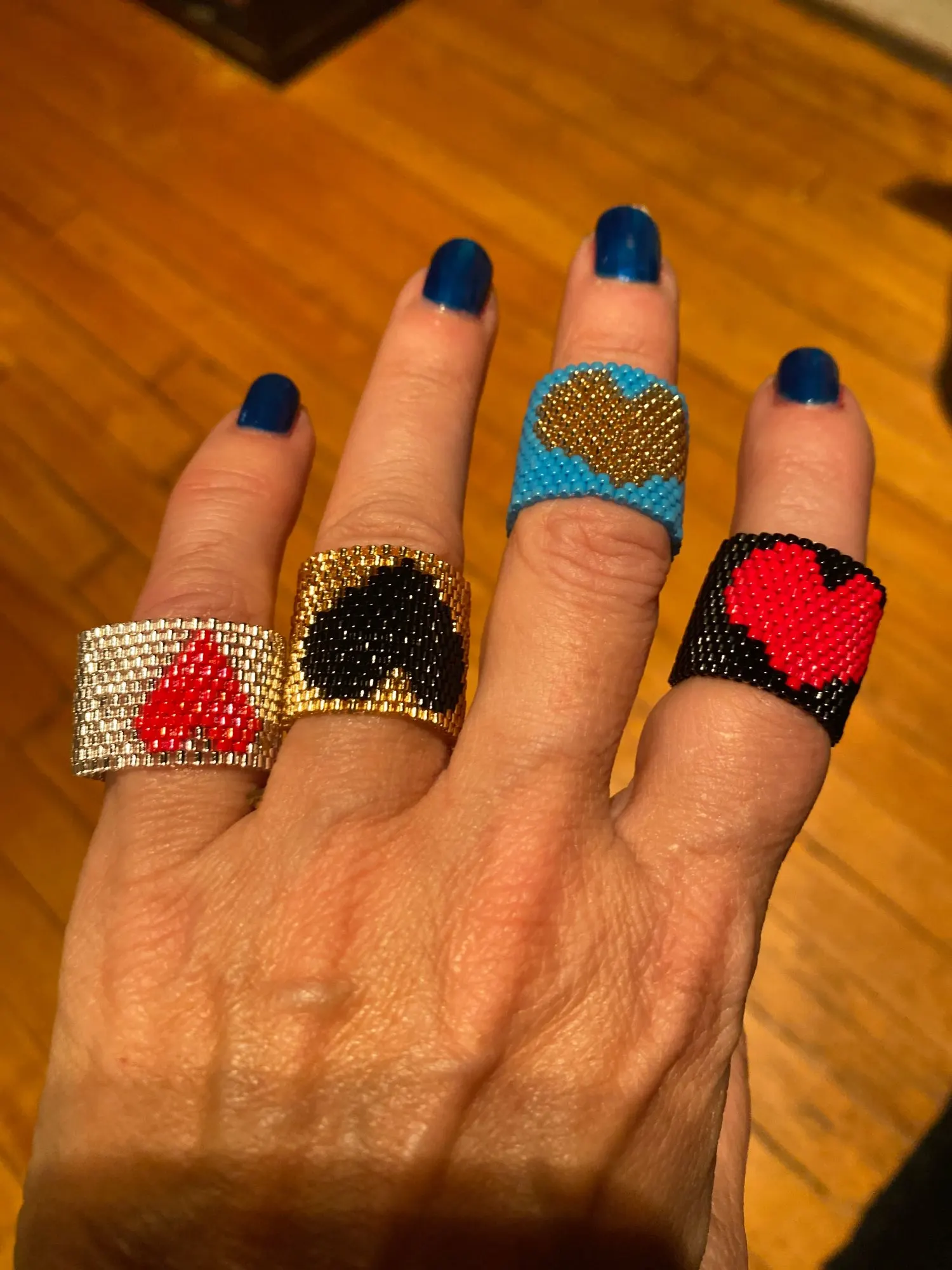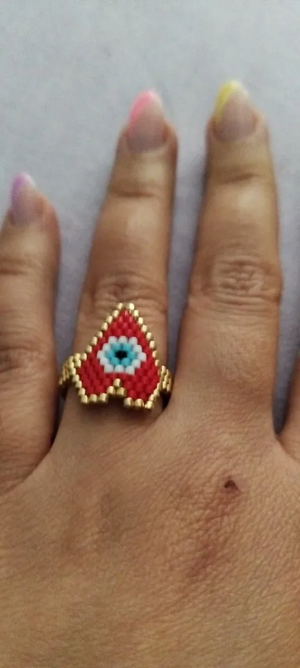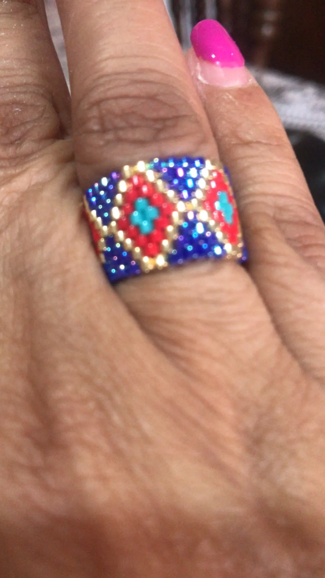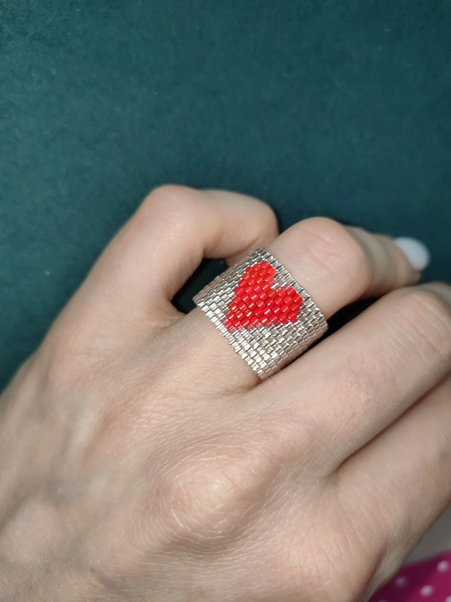 Отличного качества кольцо. Бисер ровный, похож на японский. Сплетено аккуратно. На 17 размер пальца подошло. Заказ был упакован в пакет с пупыркой, внутри мешочек. До Владимира заказ приехал за 3 недели. Советую кольцо и продавца.