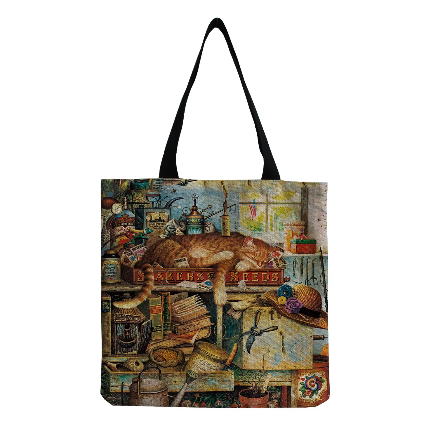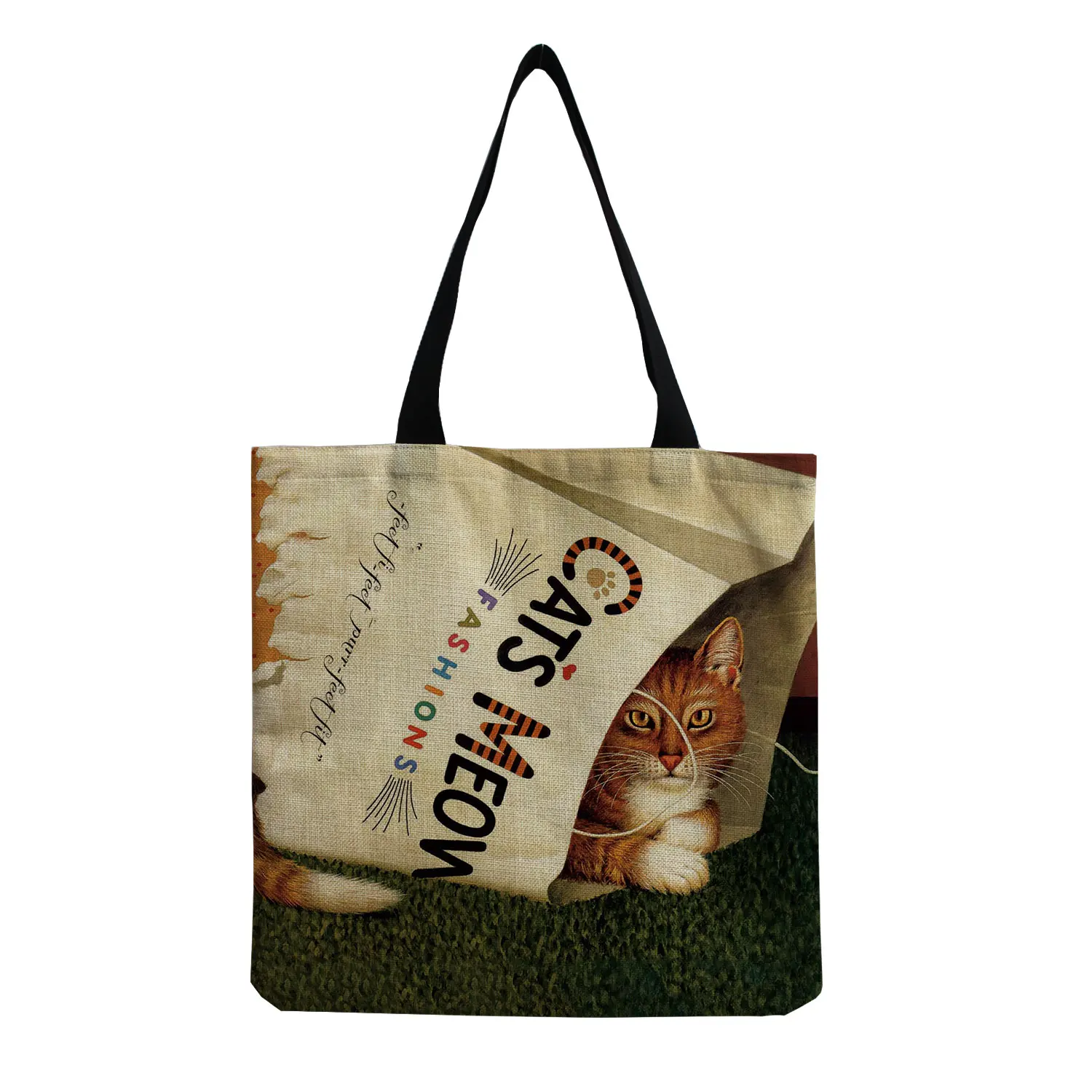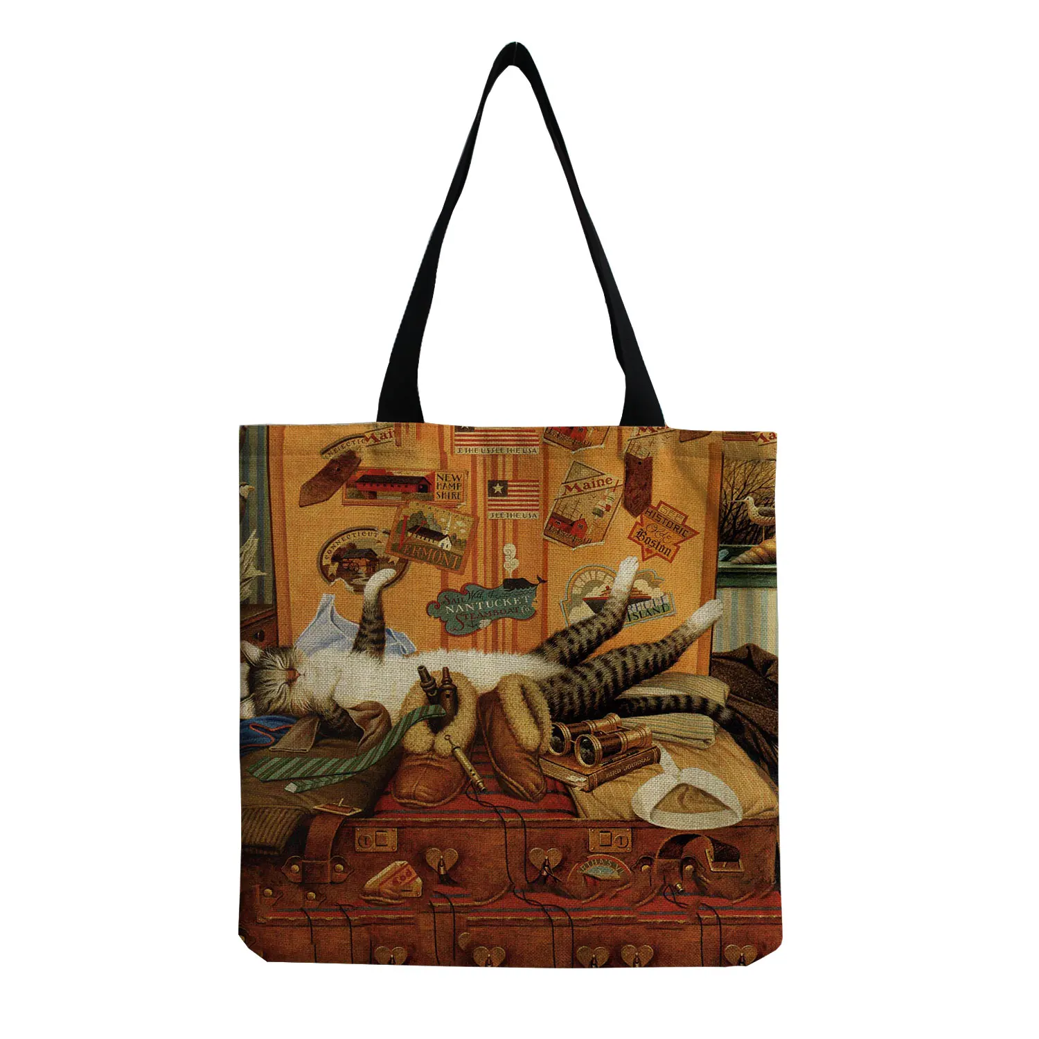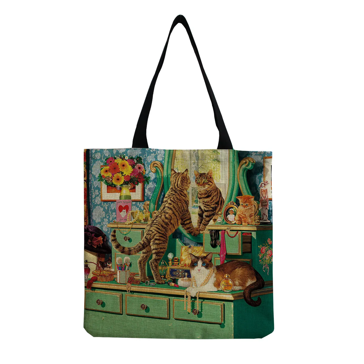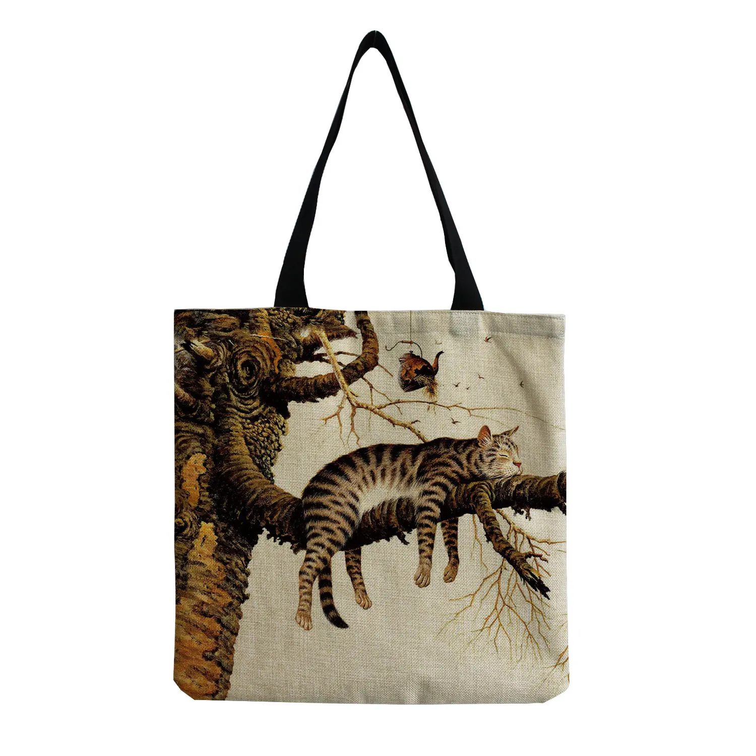 Индивидуальная сумка-тоут, сумки для покупок, картина маслом, принт кота, женская сумка, Льняная сумка, повседневные дорожные пляжные сумки, сумка для мам