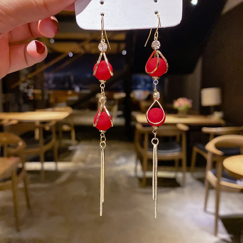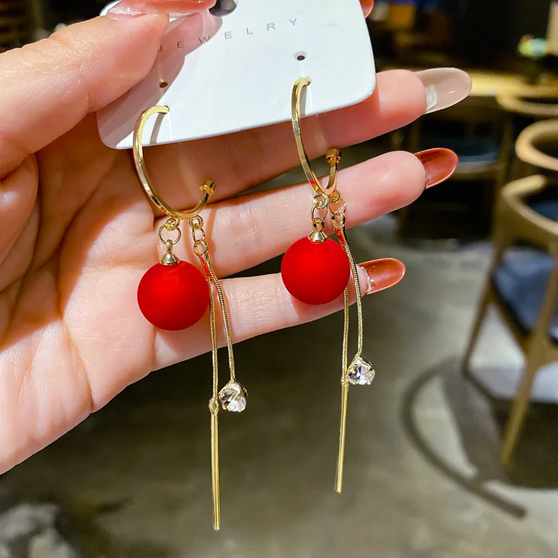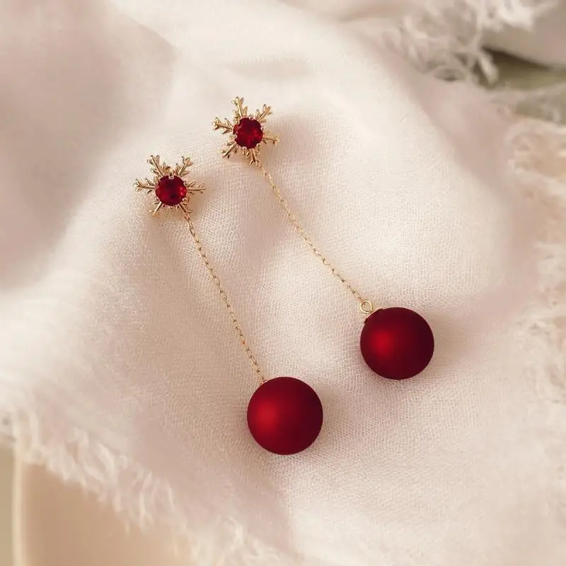 Модные рождественские красные Висячие серьги для женщин снежинки жемчужные серьги Рождественская вечеринка фестиваль новогодние ювелирные изделия