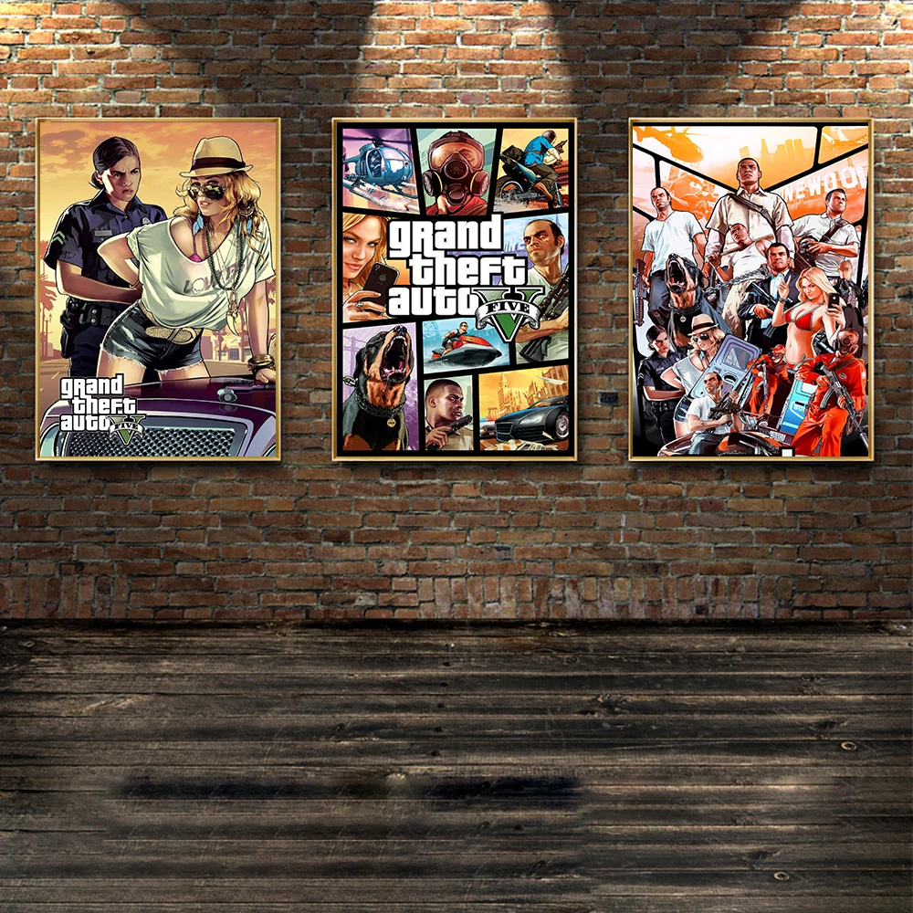 Grand Theft Auto 5 Game Art ретро постер GTA 5 роспись Гостиная картина игровая комната качественная живопись постеры холст картина
