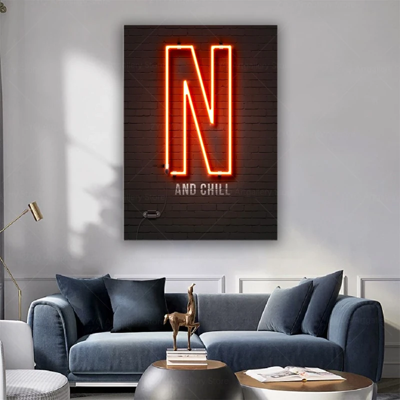 Неоновый плакат Netflix And Chill, качественная Картина на холсте, плакат, современное искусство для гостиной и спальни, домашний Настенный декор, картина без лампы