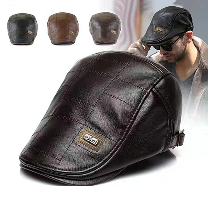 Винтажный Мужской берет, кожаная кепка газетчика, Осень-зима, тепла...