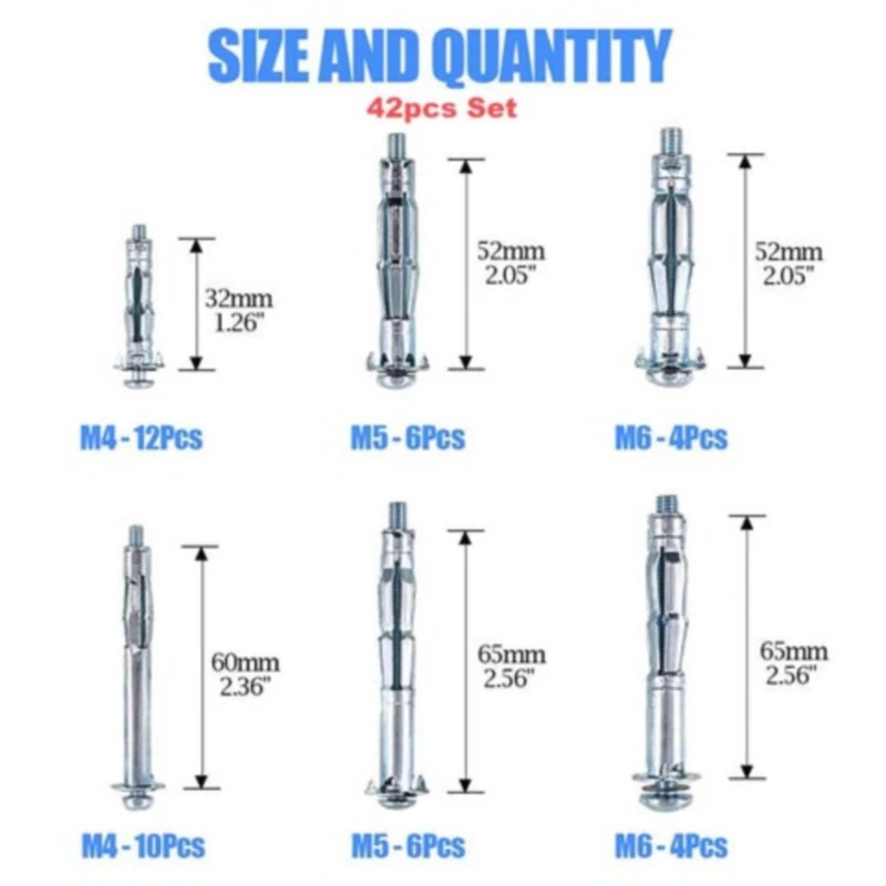 Различные размеры для большинства стенВы можете выбрать различные размеры болтов для удовлетворения ваших потребностей.Подходит для широкого диапазона толщины полых стен.
