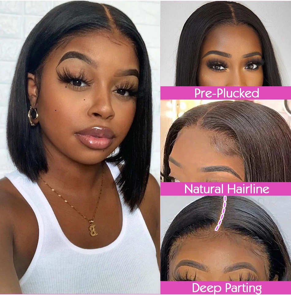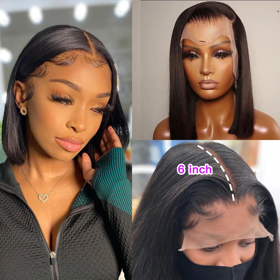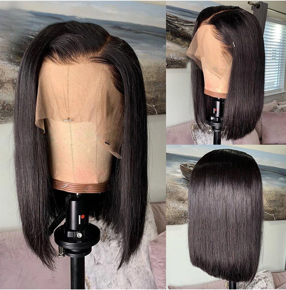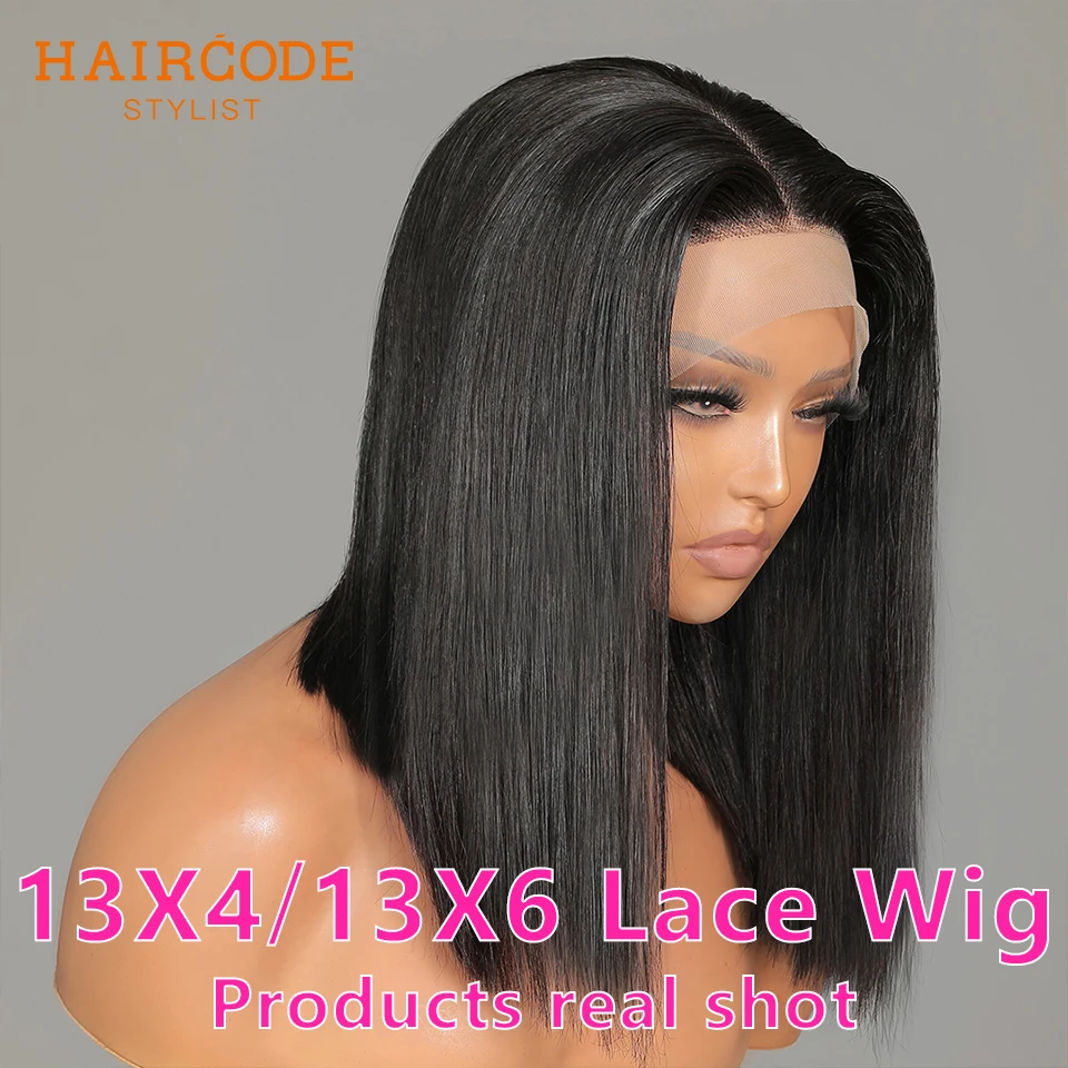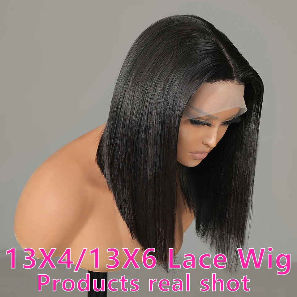 Парик на сетке спереди 13x4 13x 6, короткие парики боб, парики на прямой сетке спереди из человеческих волос, парики для женщин, предварительно выпрямленные Детские волосы, парик без клея, Реми