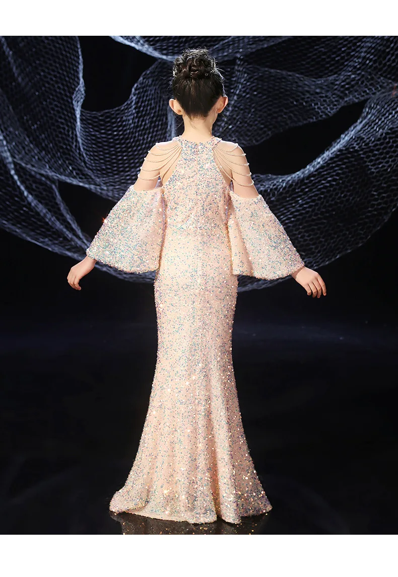 Роскошное детское платье принцессы, блестящее платье с блестками для девочек 10, 12 лет, 14 лет, элегантное вечернее платье с юбкой-годе для подростков