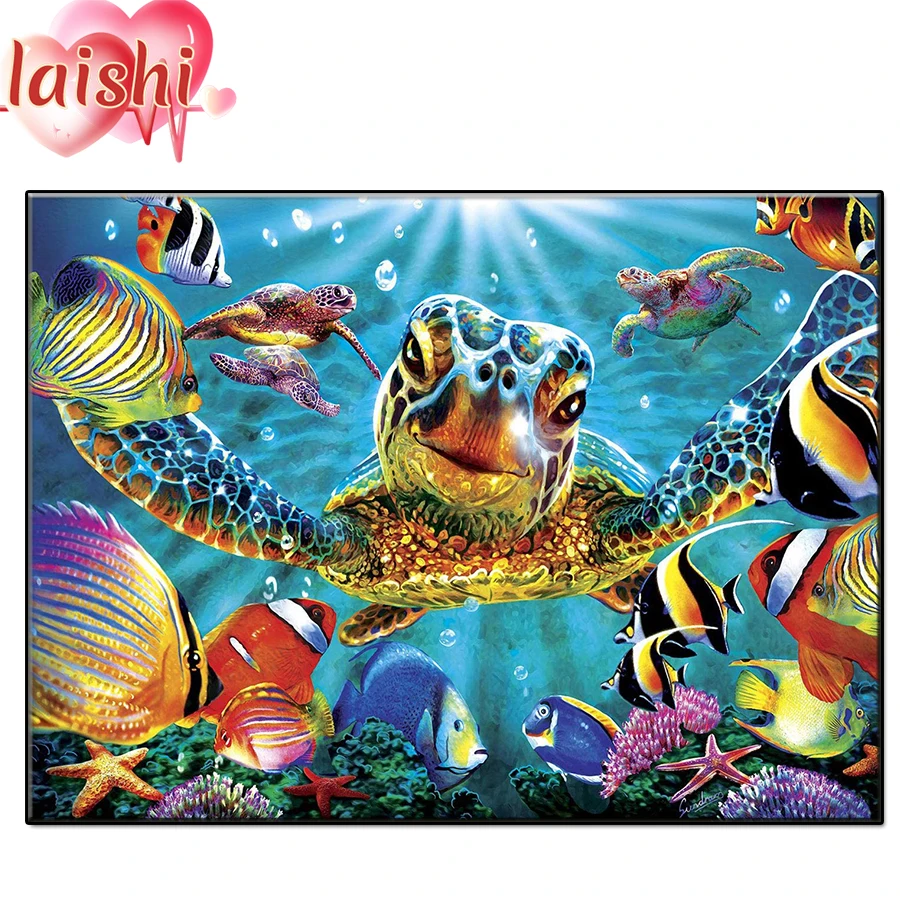 Подводные Животные пейзаж, черепахи, рыба полный квадраткруглый Алмазная вышивка алмазная живопись Стразы картина Алмаз