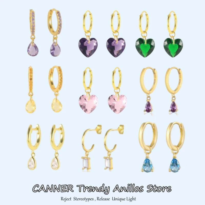 Женские серьги-кольца CANNER из серебра 100% пробы с разноцветным Цирконом