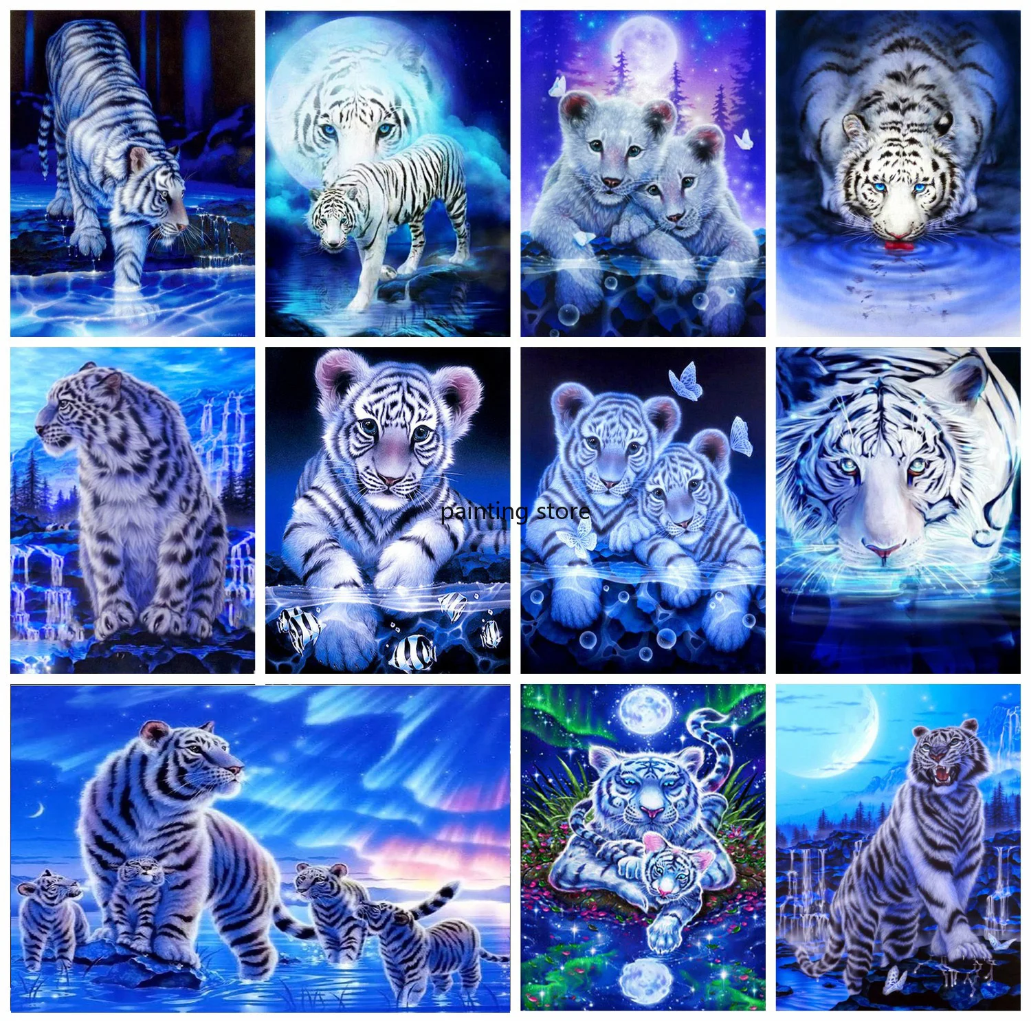 Алмазная 5d картина сделай сам с голубым тигром, полноразмерная Алмазная вышивка, животное, мозаика, картина стразы, Набор для вышивки крестиком, домашний декор