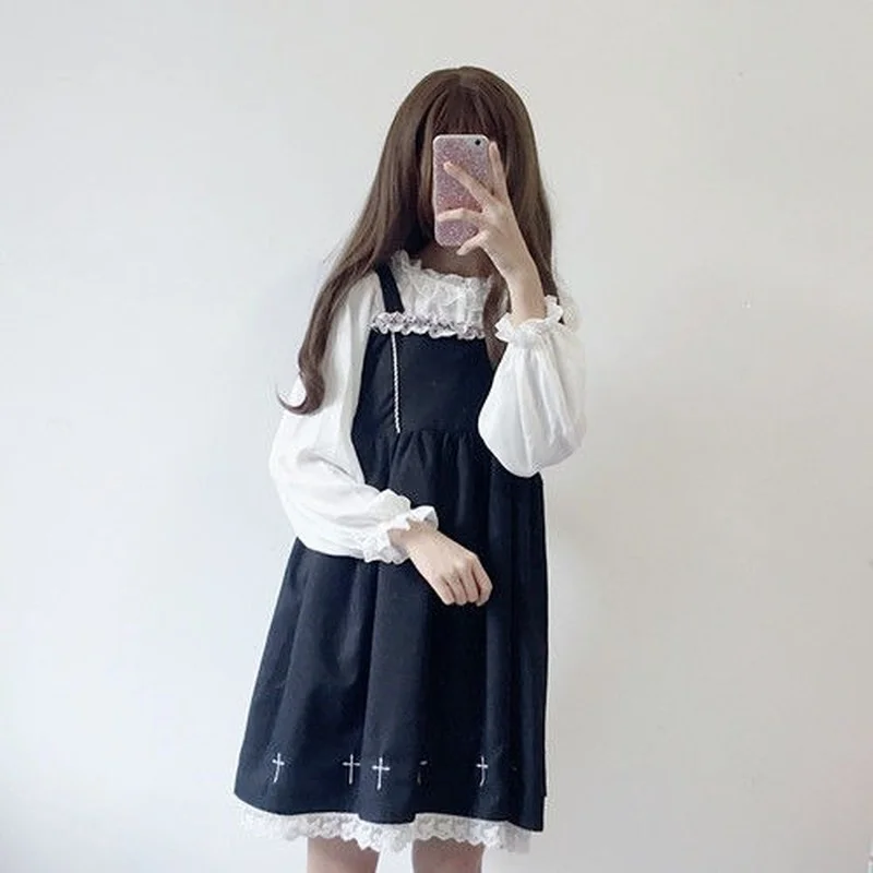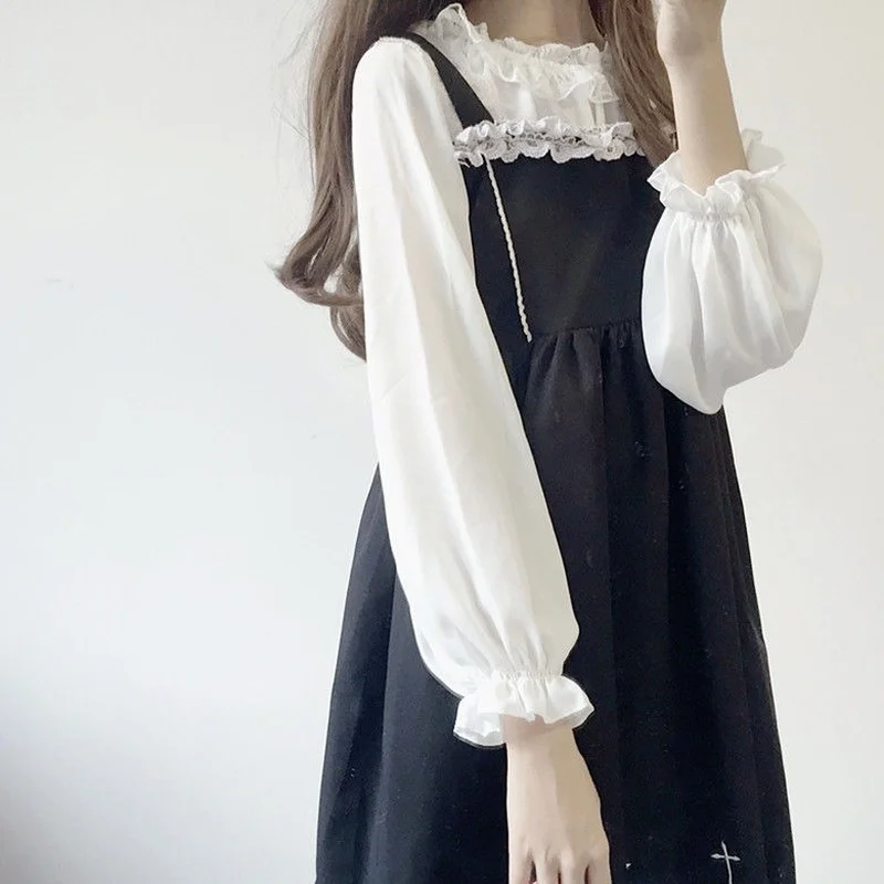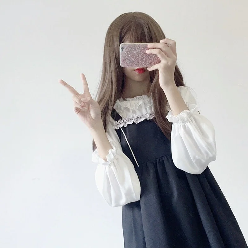 Кружевная рубашка в японском стиле "Лолита", Женская Осенняя Мягкая...