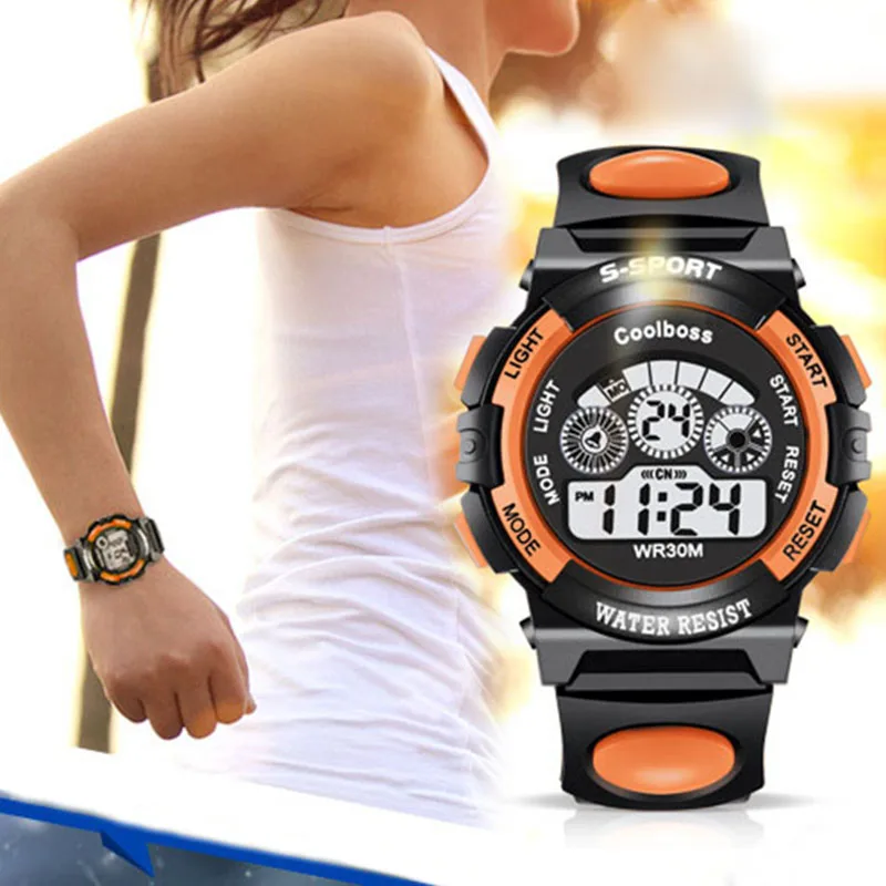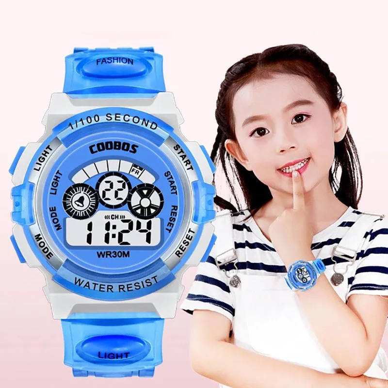 Светодиодные электронные цифровые часы для детей подростковый светящийся Циферблат Водонепроницаемые многофункциональные детские спортивные наручные часы для мальчиков и девочек