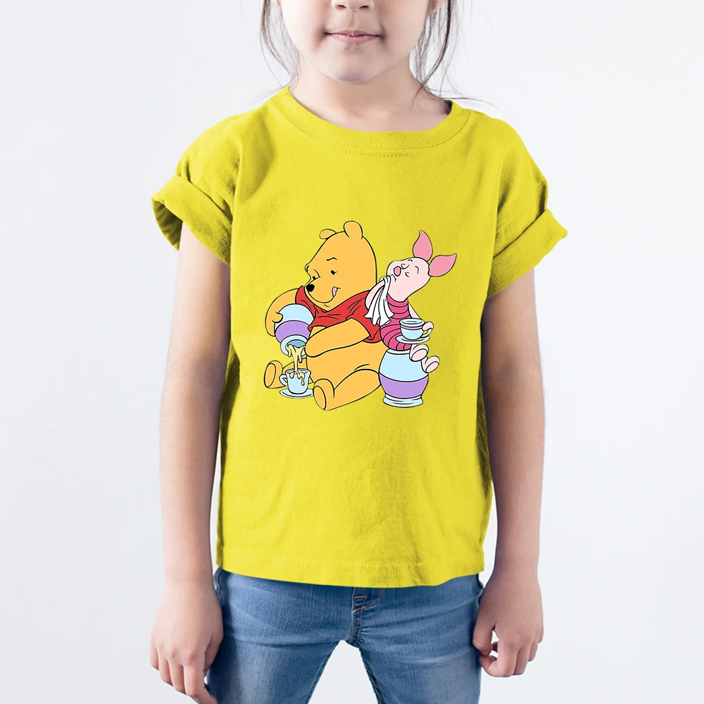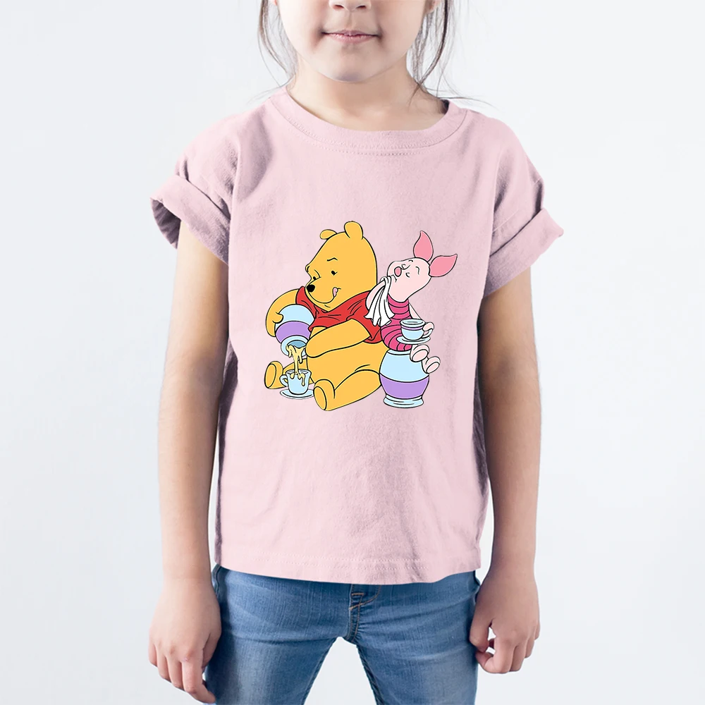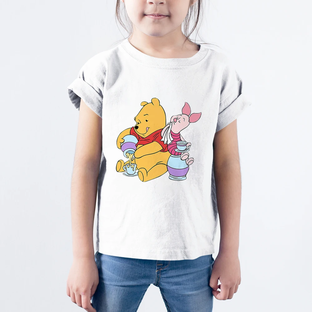 Детская одежда Винни-пух и поросенок Kawaii Harajuku Disney, футболка, Мультяшные милые топы для девочек, модная домашняя рубашка Ulzzang