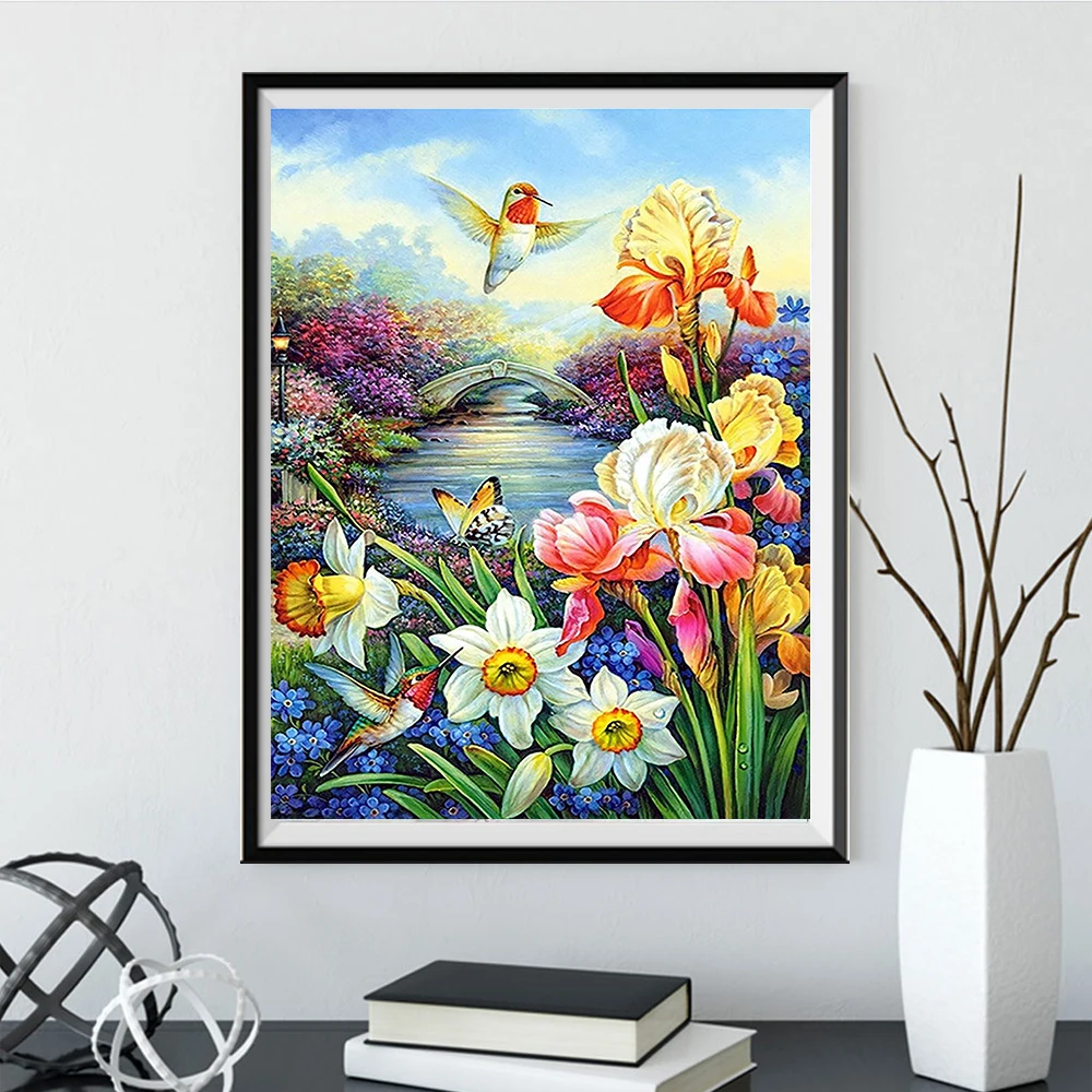 Алмазная картина 5D с изображением пейзажа, растений, цветов, вышив...