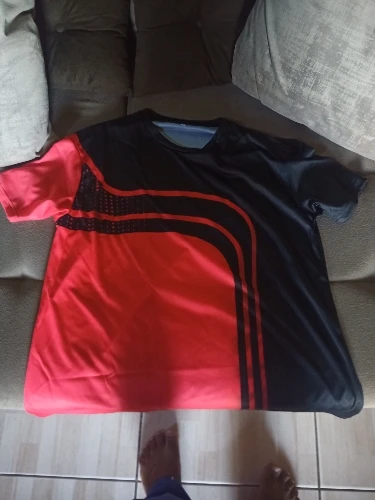 Футболка МужскаяЖенская спортивная с короткими рукавами, красно-чер...