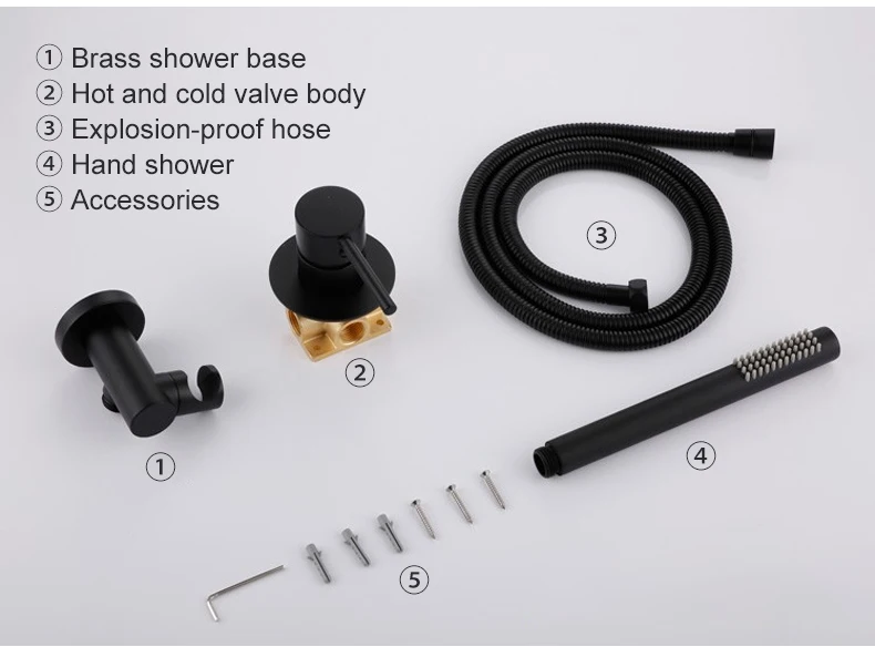 Настенный смеситель для ванны ELLEN, смеситель для душа, смеситель для душа, набор для душа, смеситель черного цвета ELB767