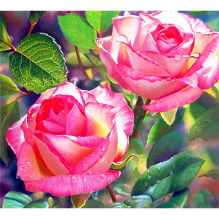Алмазная картина 5D DIY квадратная/круглая Алмазная цветочная картина зеленый лист красный цветок красота картина крестиком украшение G1001